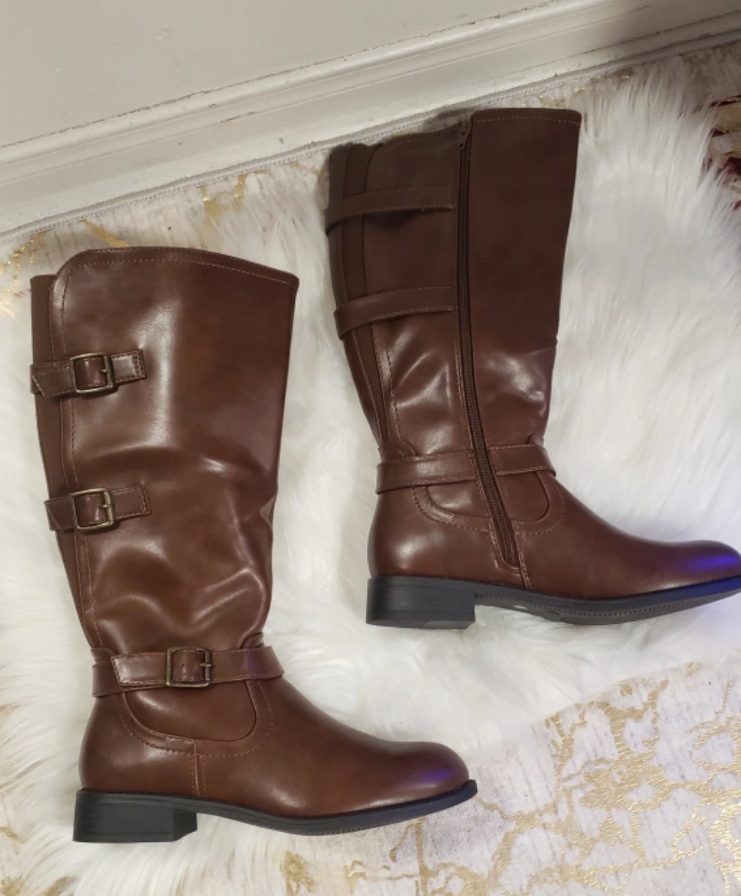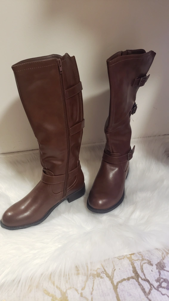 Brand new Rellsa Women's Low Heel Knee High Boots Three Buckle Strap Size 6.5 sale with box never used for more info contact me anytime π