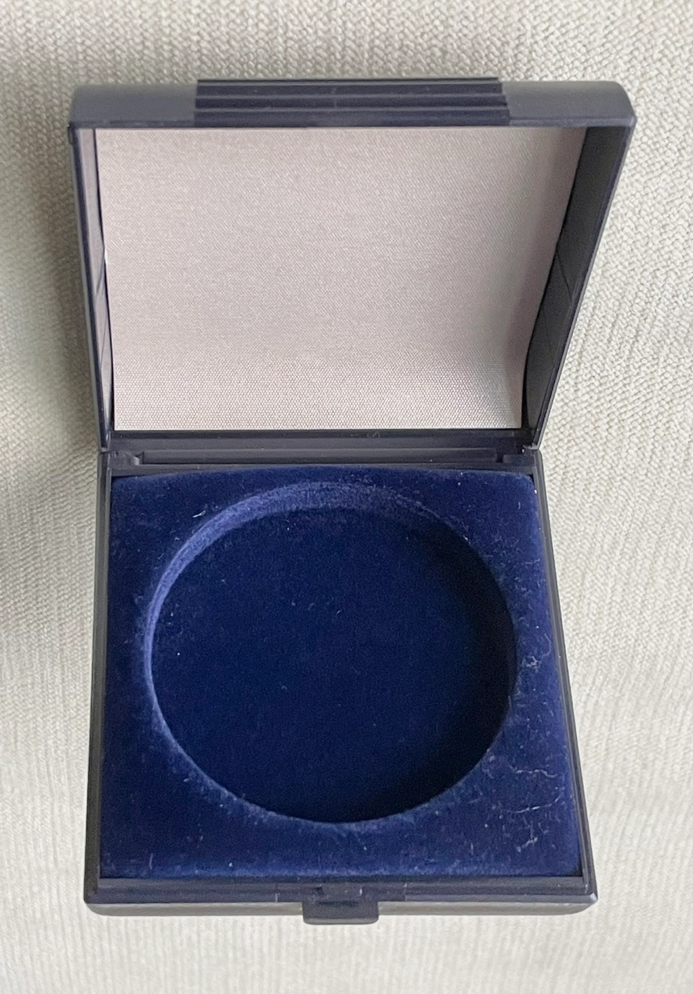 130OLYMPIC COIN DISPLAY PRESENTATION BOX - HINGED - EMPTY NO COIN An empty hinged presentation box for displaying a premium coin. No coin included - just the case, empty!! - Navy blue hard plastic case - Velvet-like lining around the coin opening - Opening fits a 47 mm coin holder - Outer blue coin case is 2 3/8 inches wide x 2 1/2 inches back-to-front - Originally for a silver coin commemorating the 1984 Olympic games in Los Angeles (U.S.) and Yugoslavia (winter games) - Empty, No coin - Excellent condition Please check out my other unique items!!