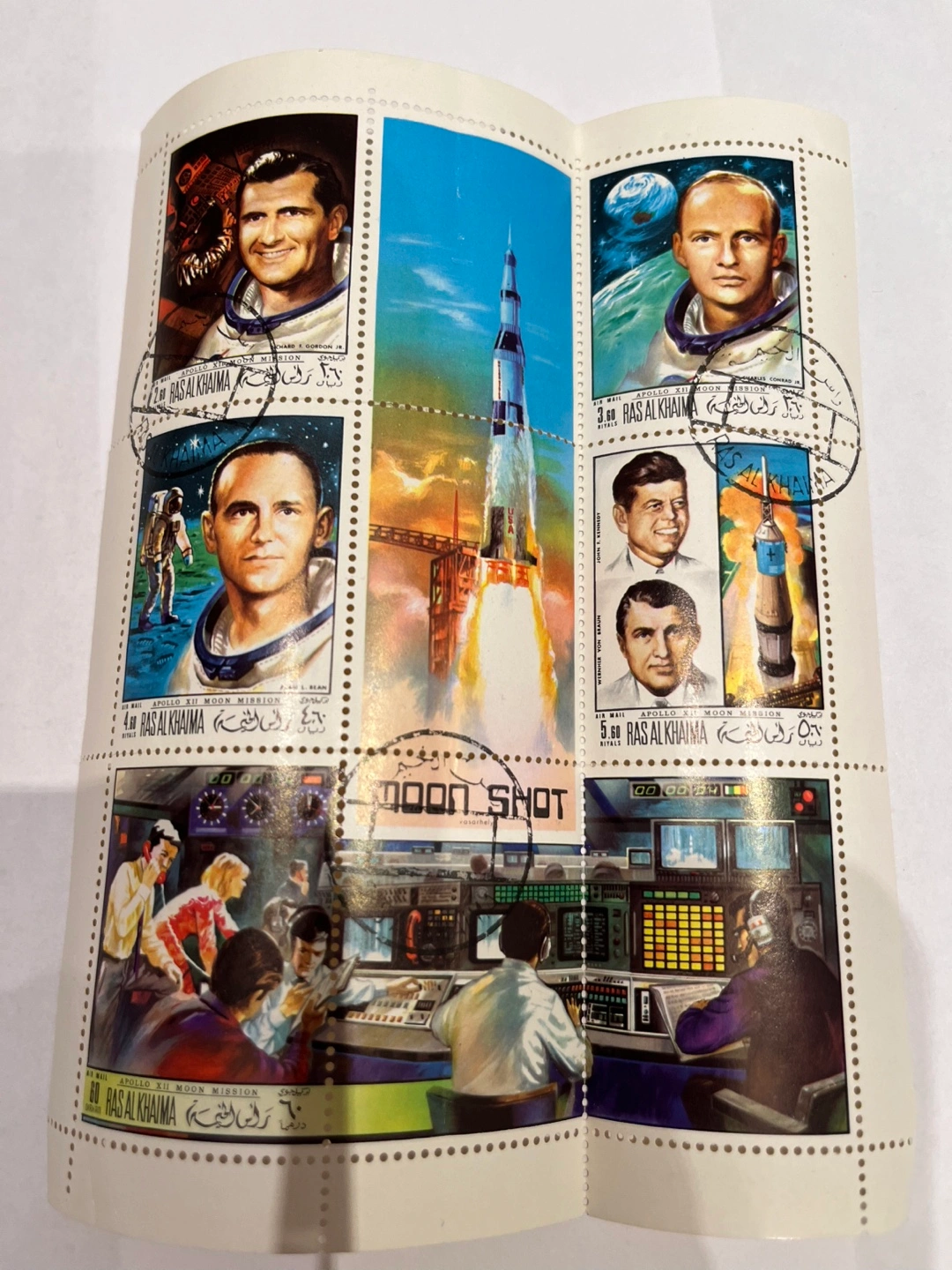 98- 1969 Souvenir Stamp Sheet of Apollo 12 Space Rocket Ship. - Good for Stamp Collectors.