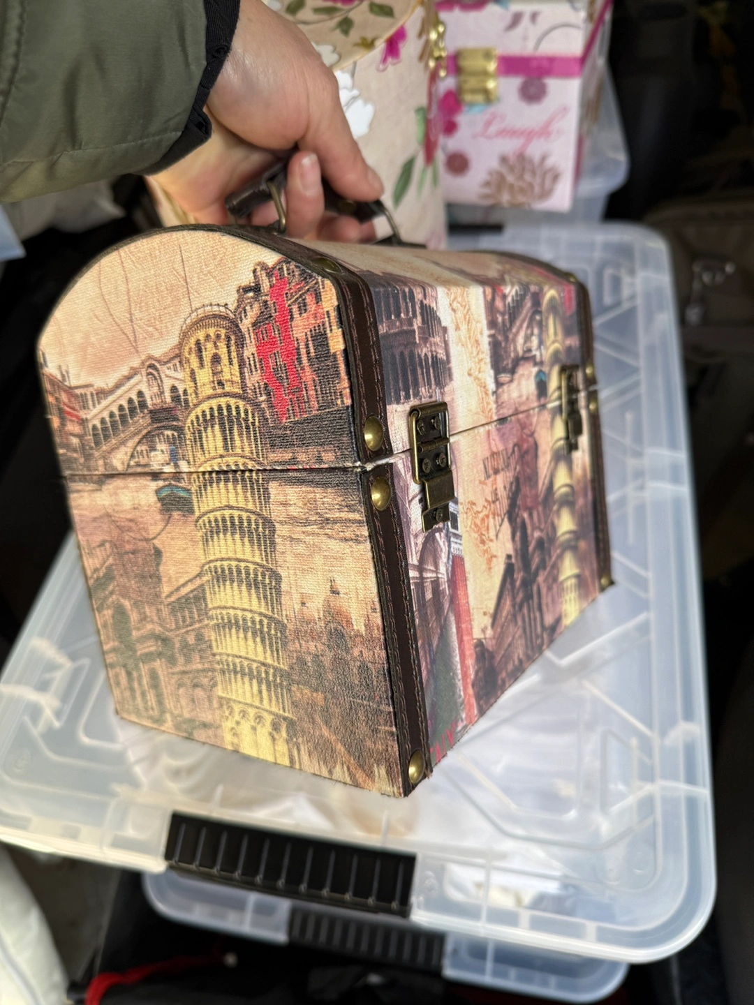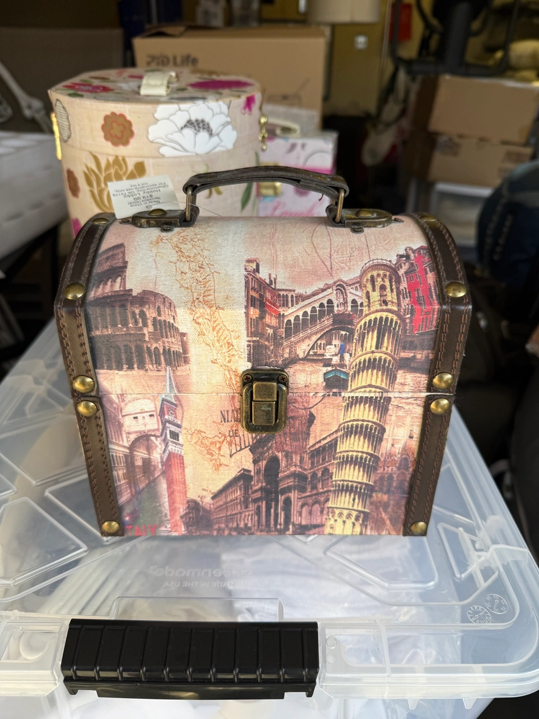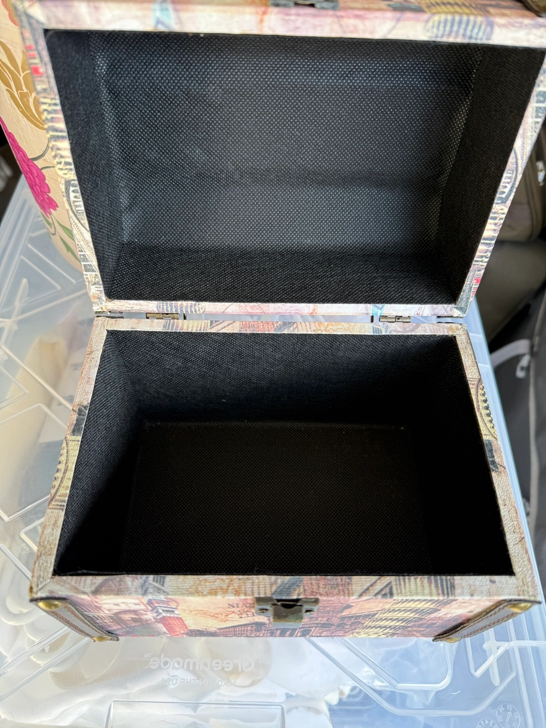 160Decorative box with vintage city design and latch closure. I originally purchased from Hobby lobby. Still in brand new condition, never used. Pick up by Irving Park and Cumberland