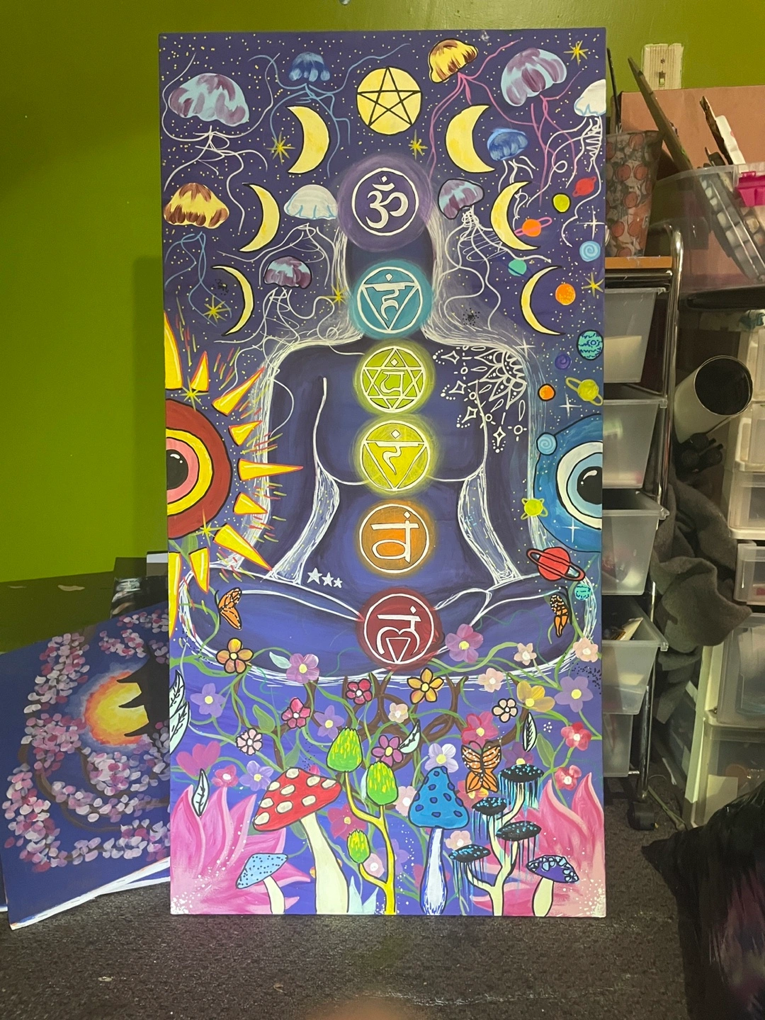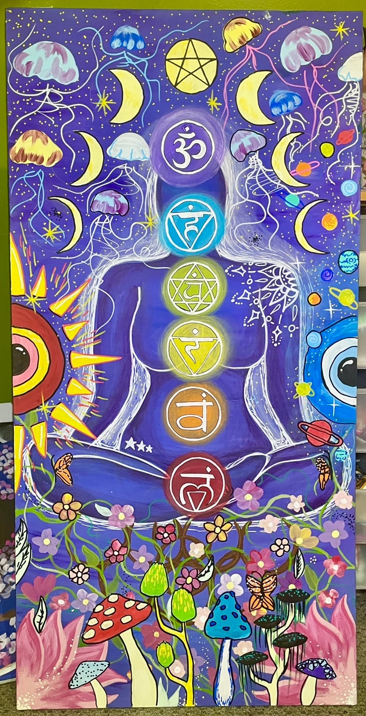 Original Acrylic hand painting "CHAKRAS" 2'x4'