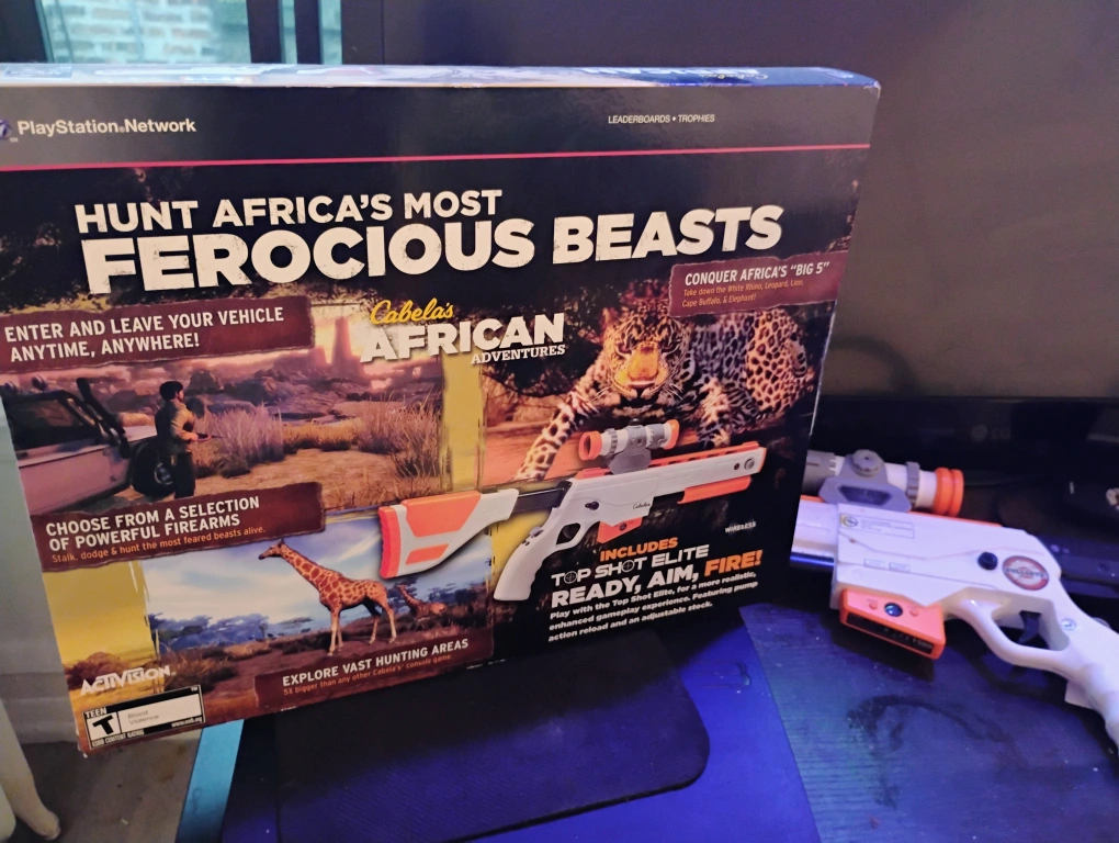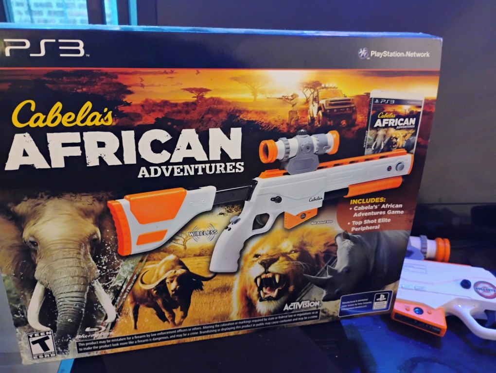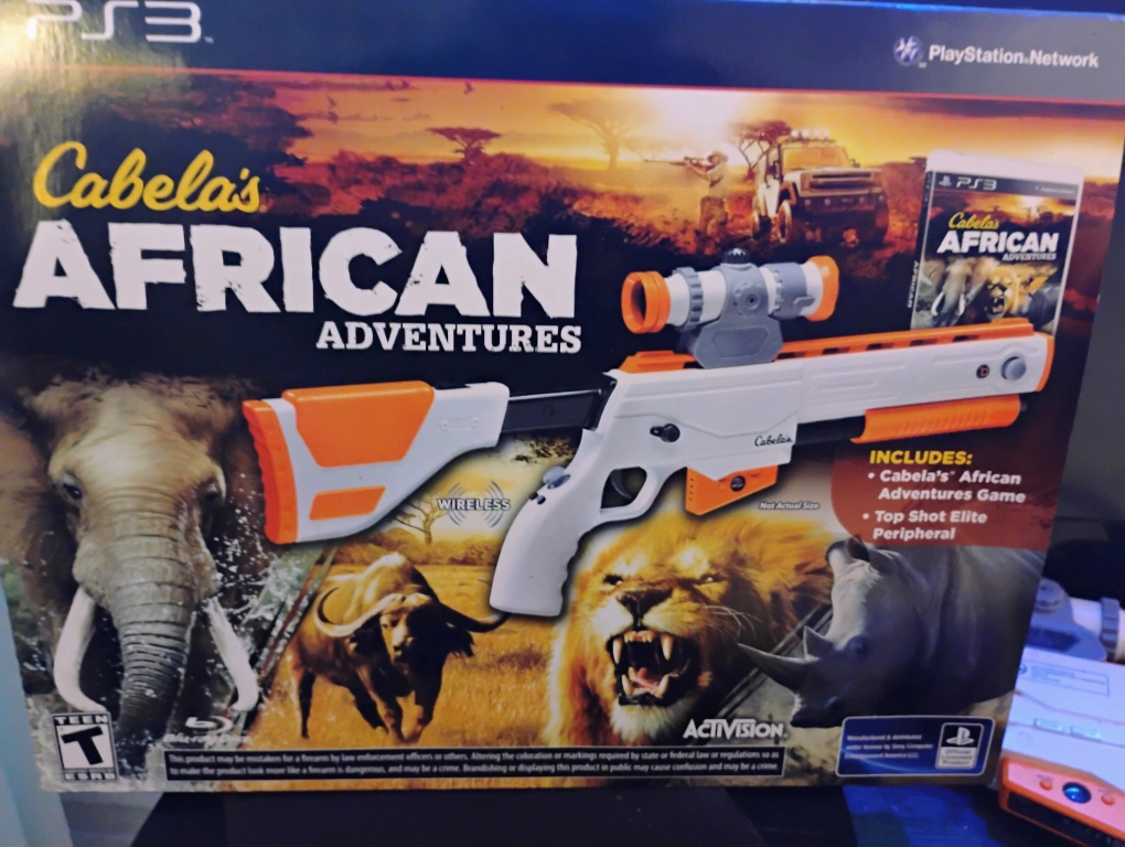 75Cabela's African Adventures PS3 game with the Top Shot Elite gun. Game includes hunting animals in Africa.
