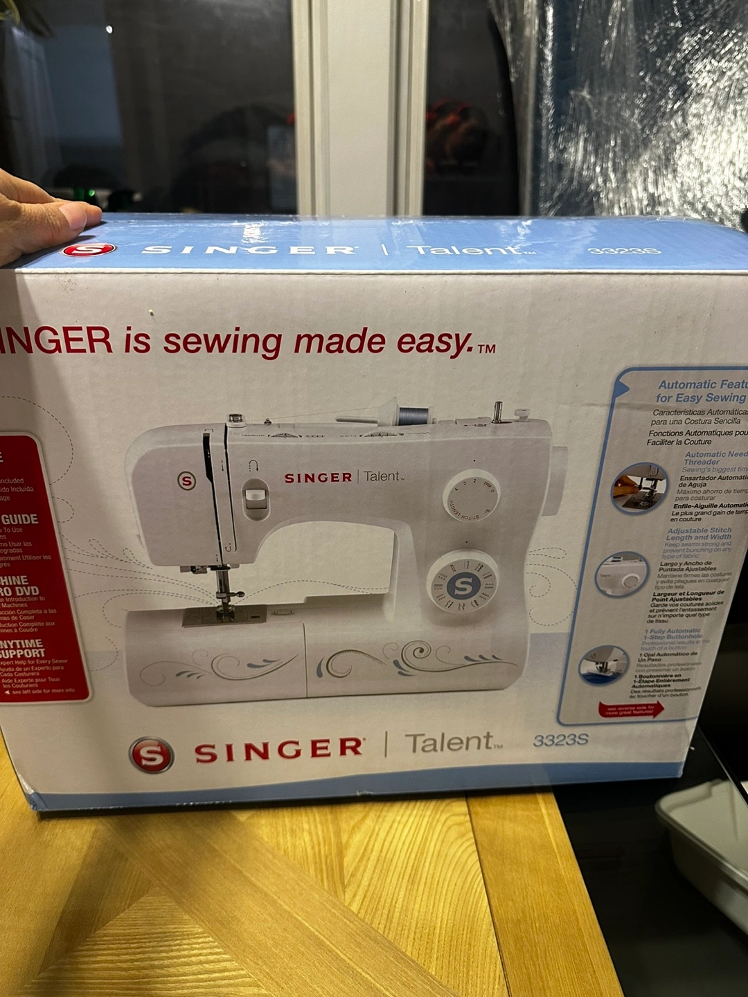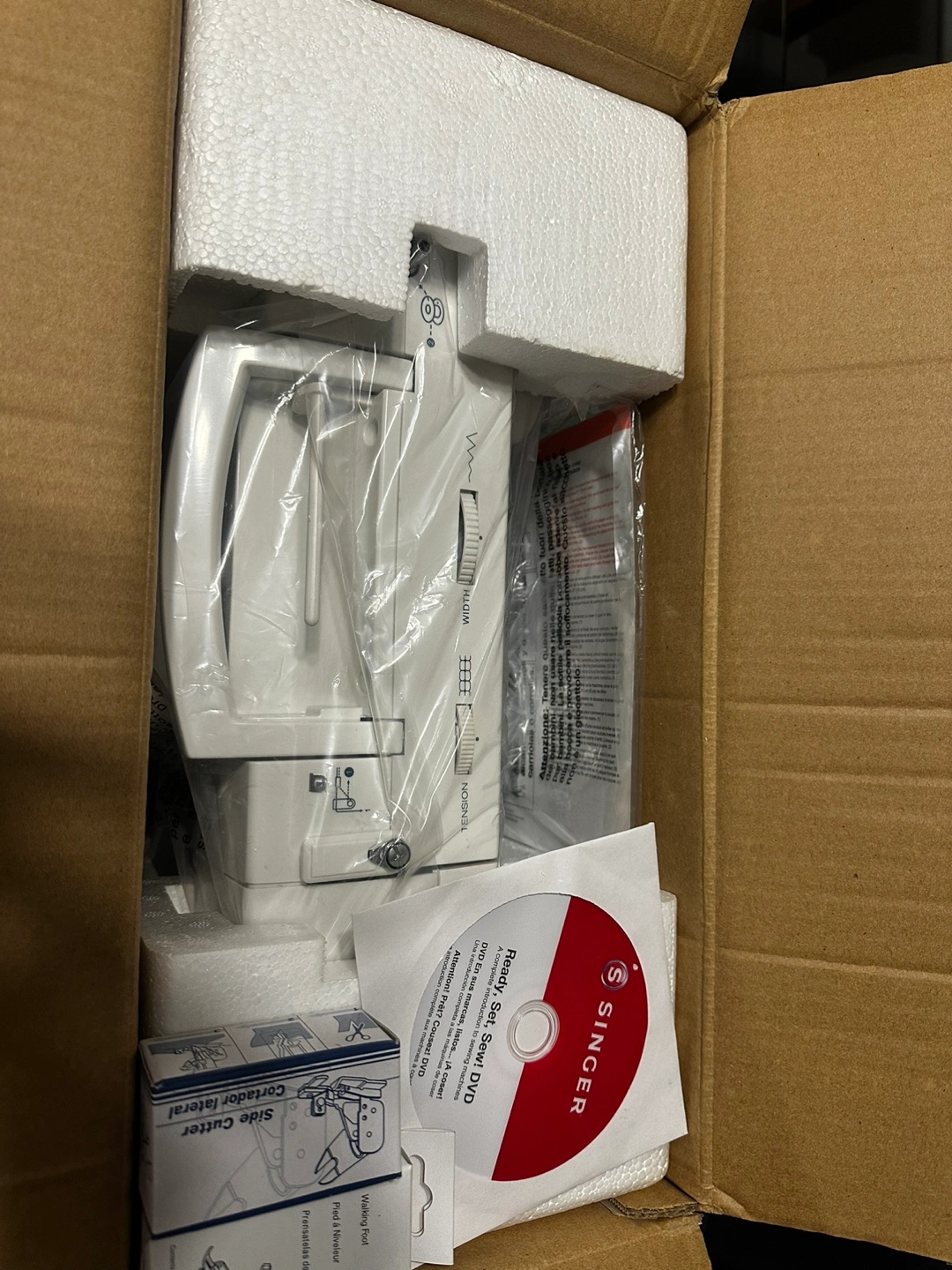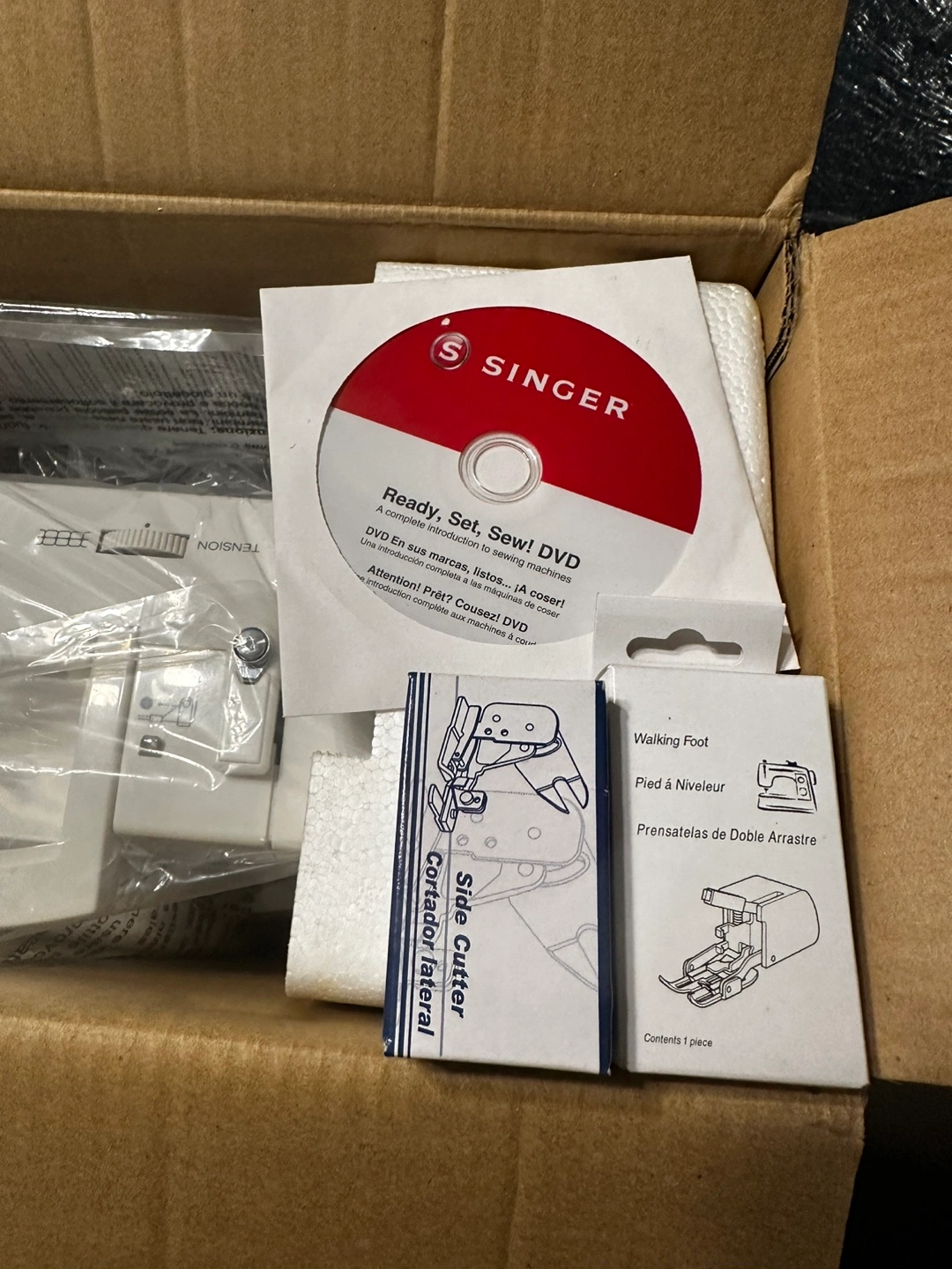 42New in box. Includes DVD, side cutter, and walking foot. Hard plastic case included.
