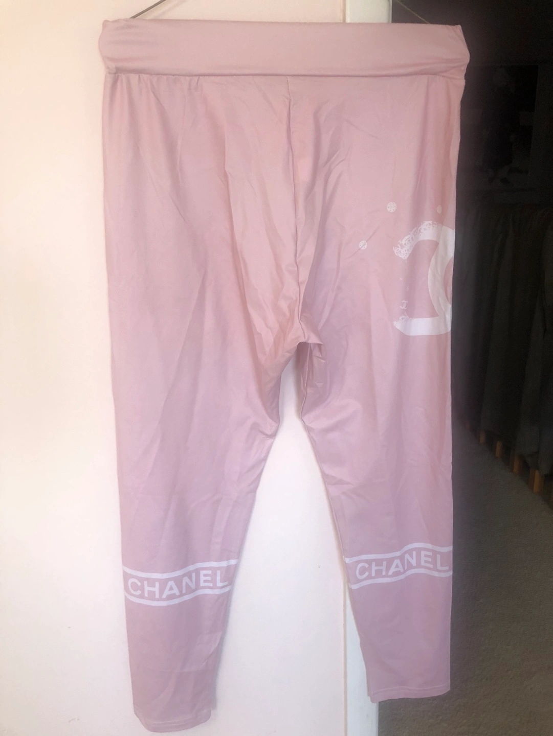 83Pink leggings with white Chanel logo.