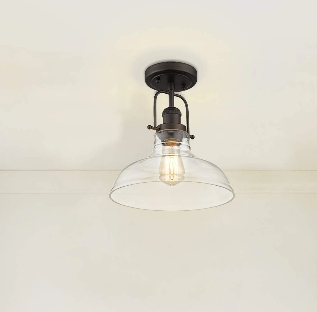 Oil-rubbed bronze finish. Clear glass shade. New in box.