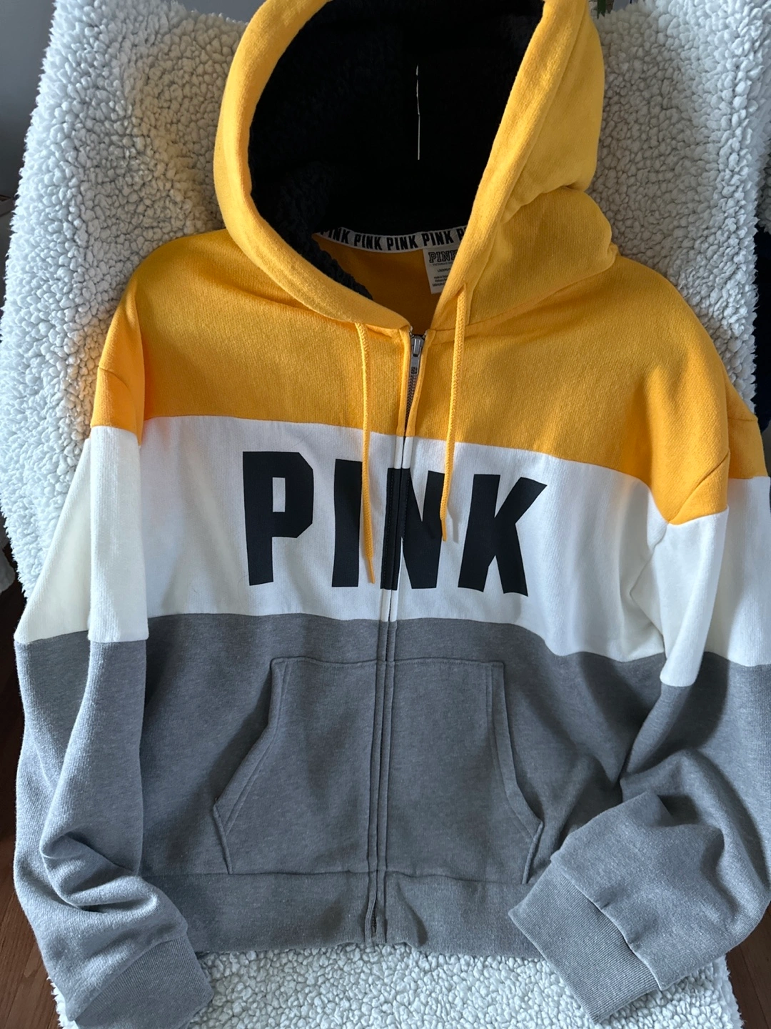 Three Pink Victoria's Secret zip-up hoodies. Various colors and styles. . Pre-owned.
