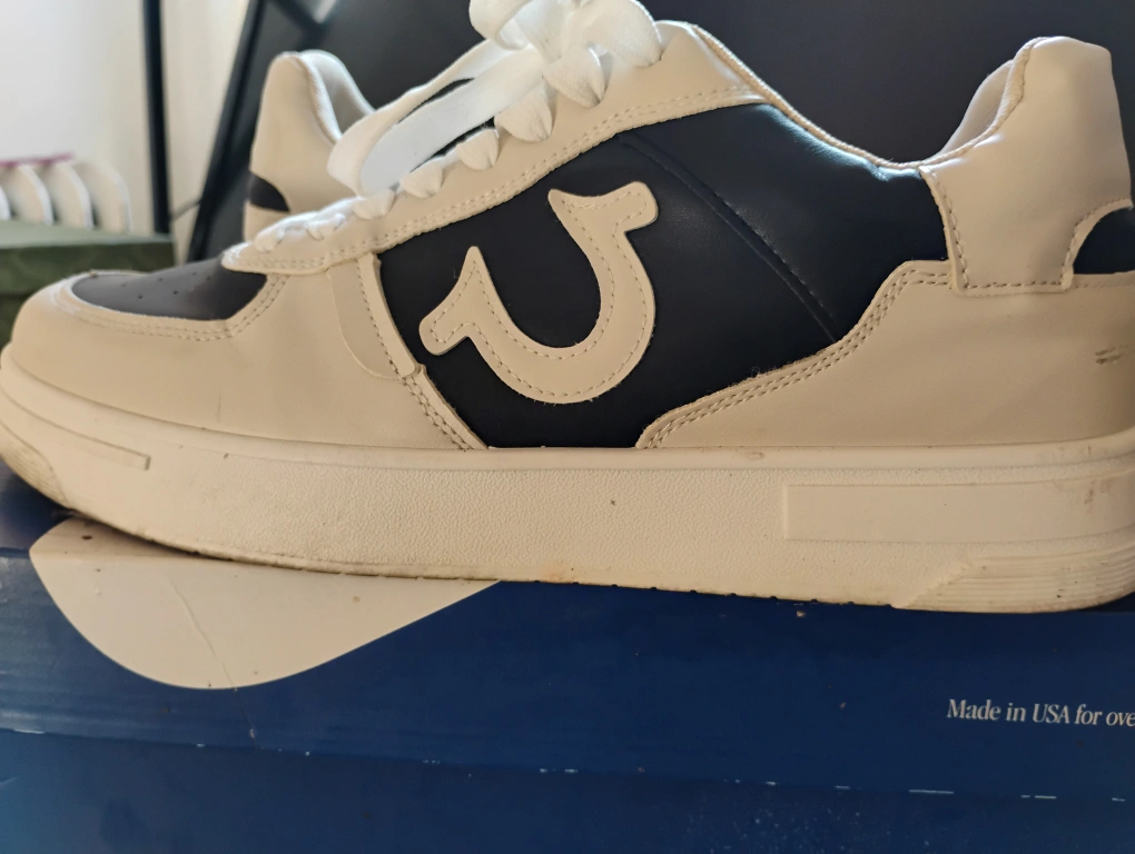75Cream and black low-top sneakers. White laces. Classic design. Pre-owned. wore twice when I had jogging suit to match but someone stole the suit at the Laundromat out of the machine π so they are just sitting around no box unless I put them in my old new balance boxππ