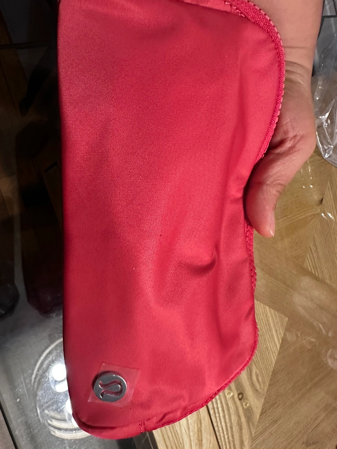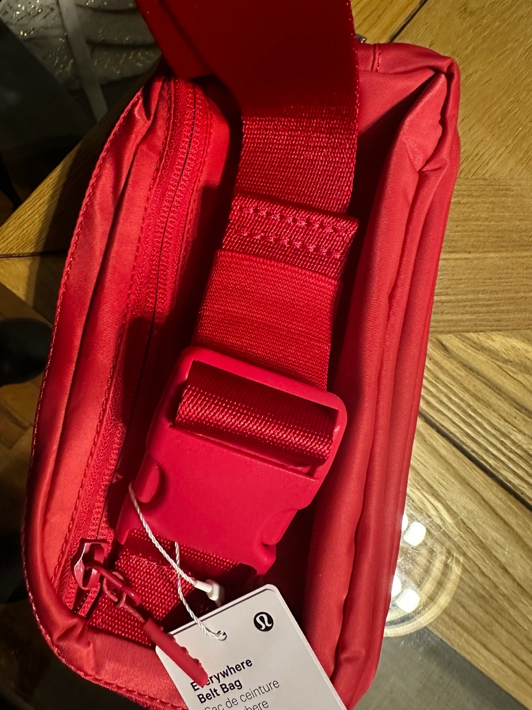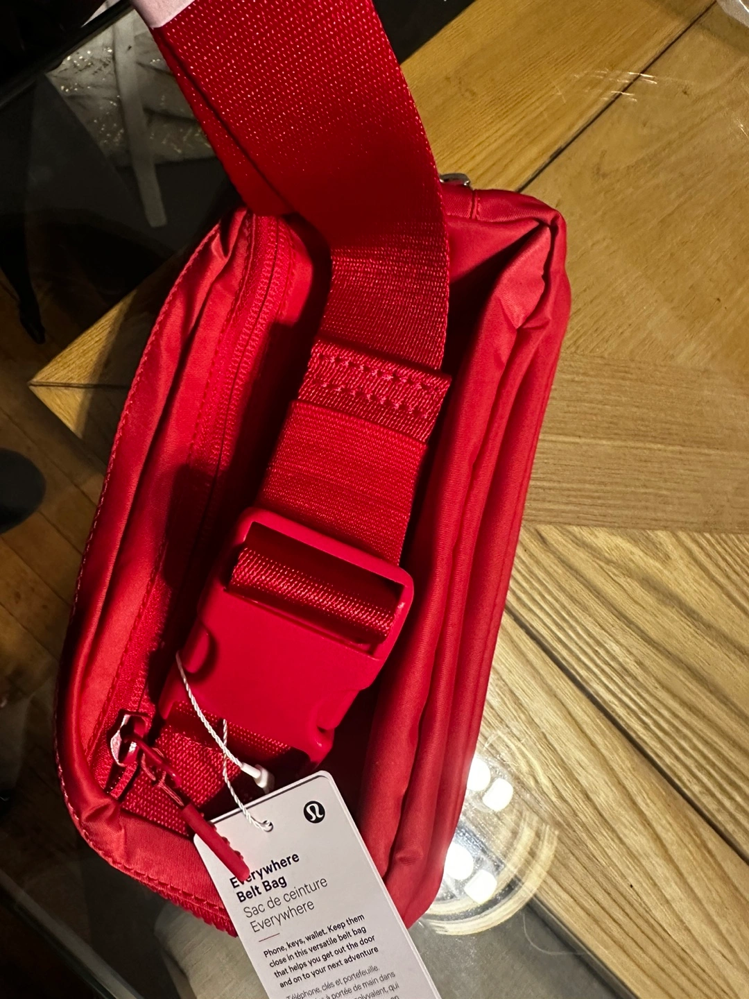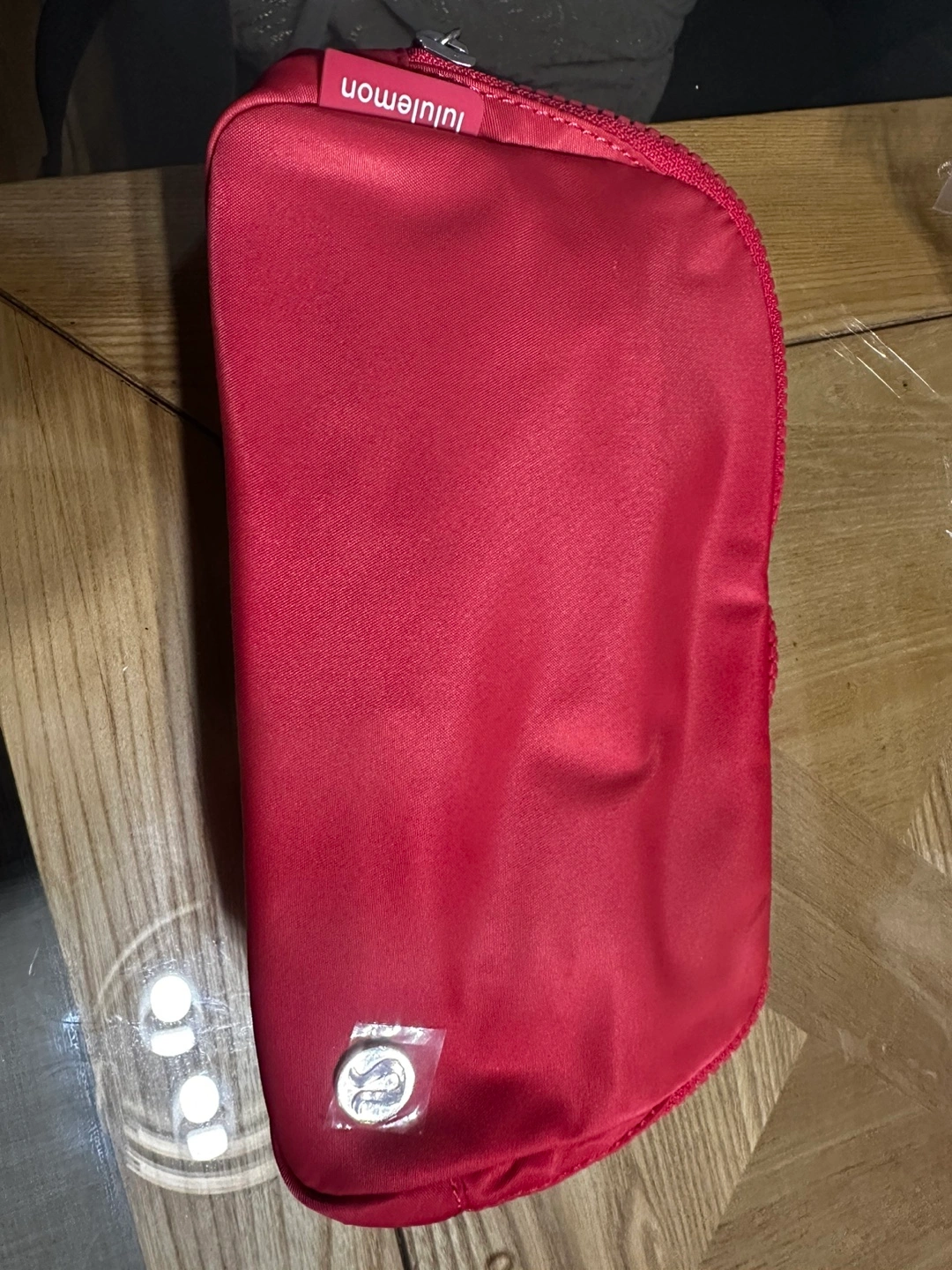 42Small red belt bag. Adjustable strap. Zipper closure. Perfect for carrying essentials.