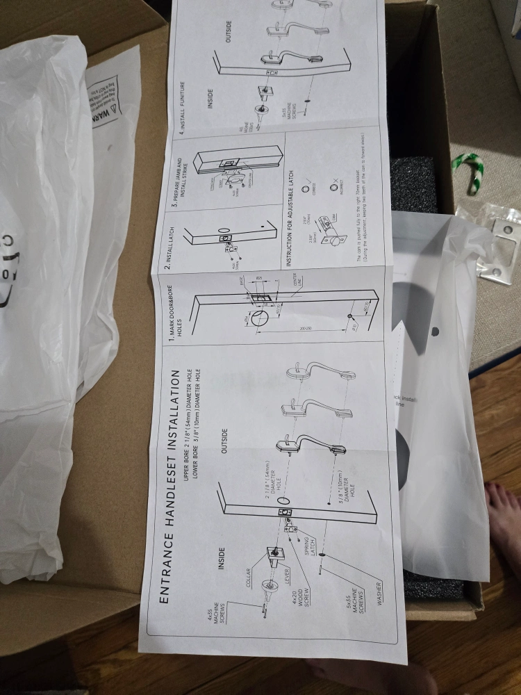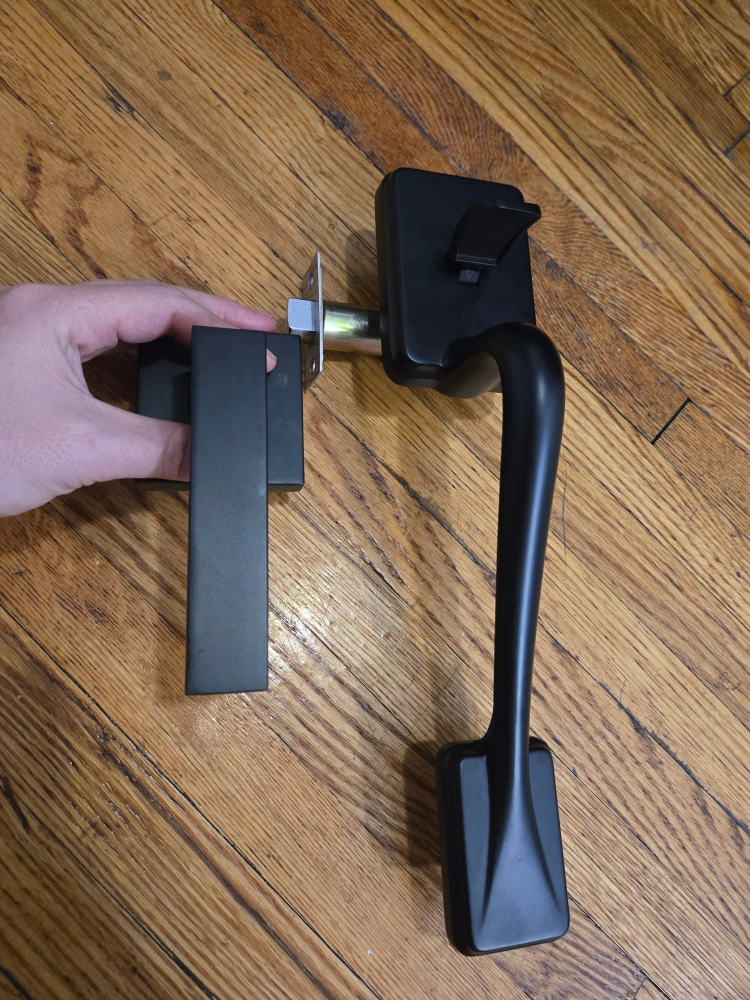 Single cylinder exterior door entry handle with door lever. Reversible for right and left sided doors. Includes all hardware and instructions. New in box.
