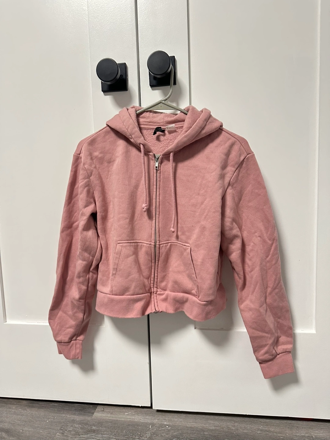 Cropped zip-up hoodie •color: strawberry milk FYI, I wear xs-s and it fits like regular length top size for me (not a cropped)!