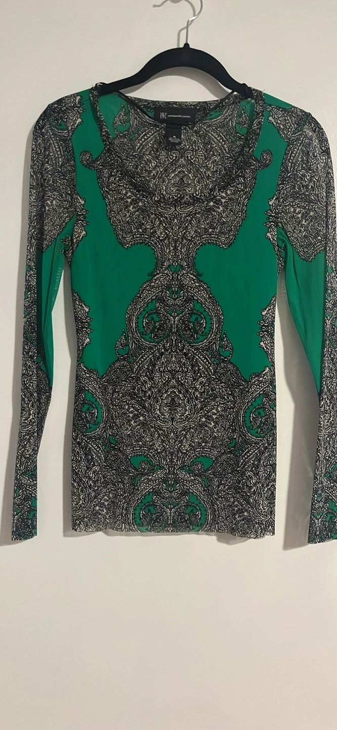 15Two INC International Concepts long sleeve shirts. Green with black patterned design. Sheer fabric. Size Small. $5 each Purchased at Macys Pickup near SI Mall Area or Ferry area