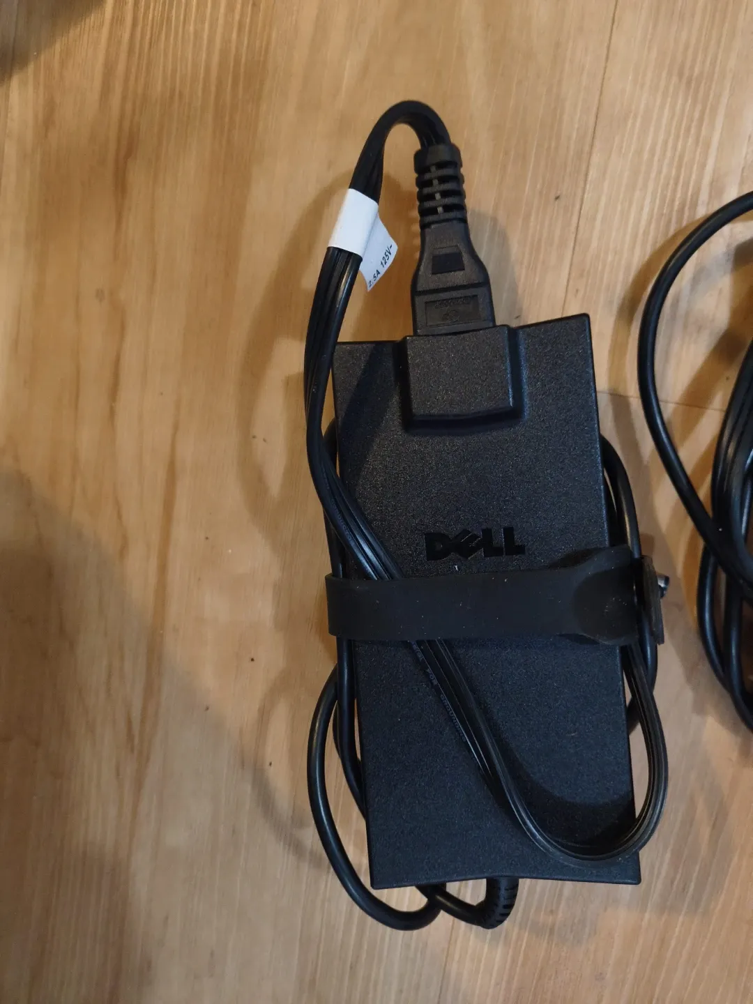 Black Dell AC adapter for laptops. It's a power supply cord and charger. Input: 100-240V~1.0A. Output: 19.5V--3.34A. This is a replacement adapter for Dell laptops.