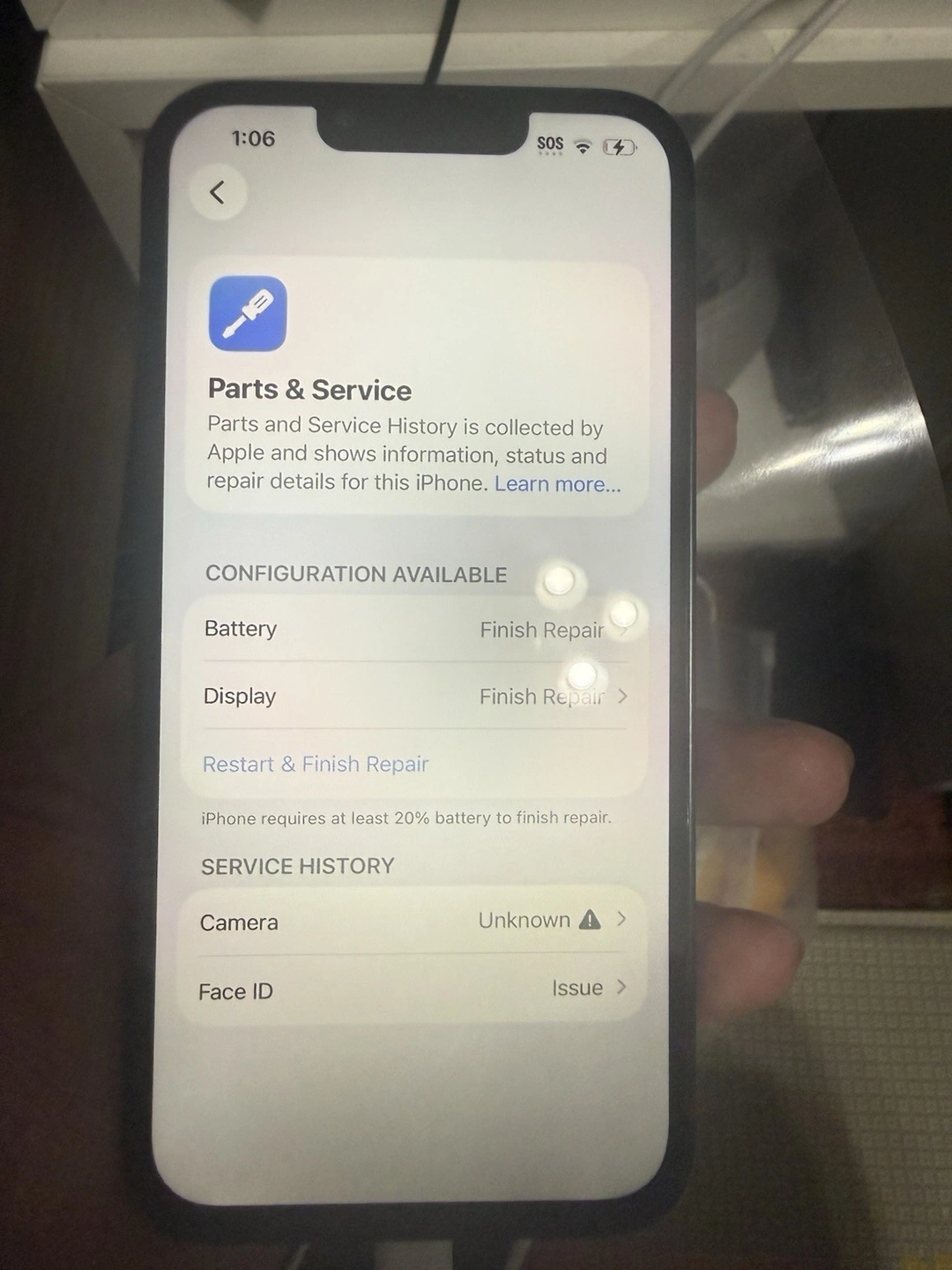 • Installed new screen → iOS forced a screen diagnostic and update to 26.4
