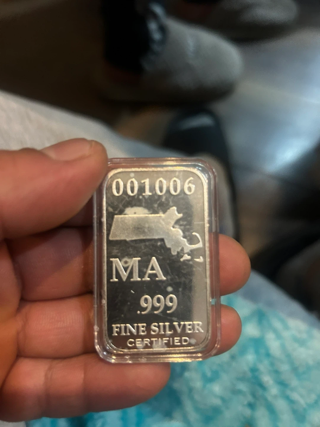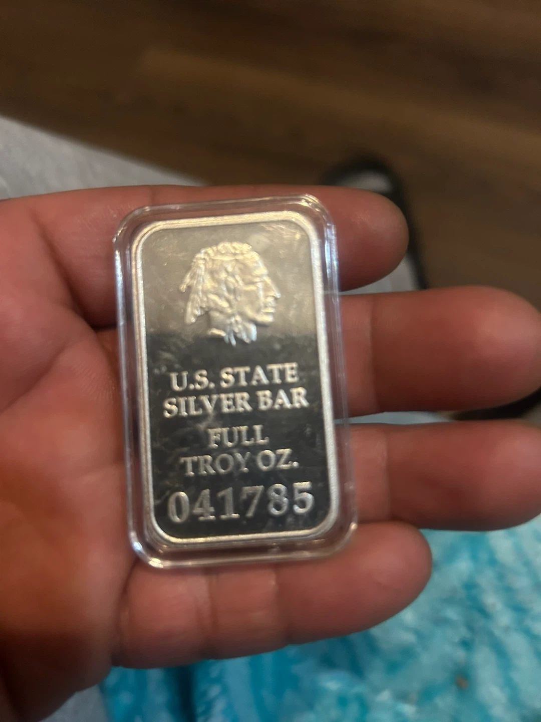 This is a full troy ounce U.S. State silver bar. It's made of .999 fine silver, certified. Includes a serial number.