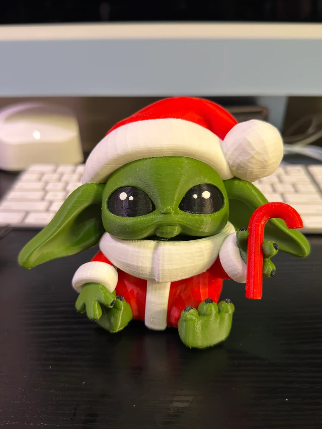 0Selling a cute Baby Yoda figurine dressed up for Christmas! It's in great condition and would make a perfect holiday decoration or gift for a Star Wars fan