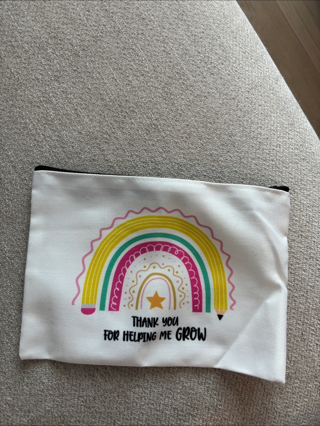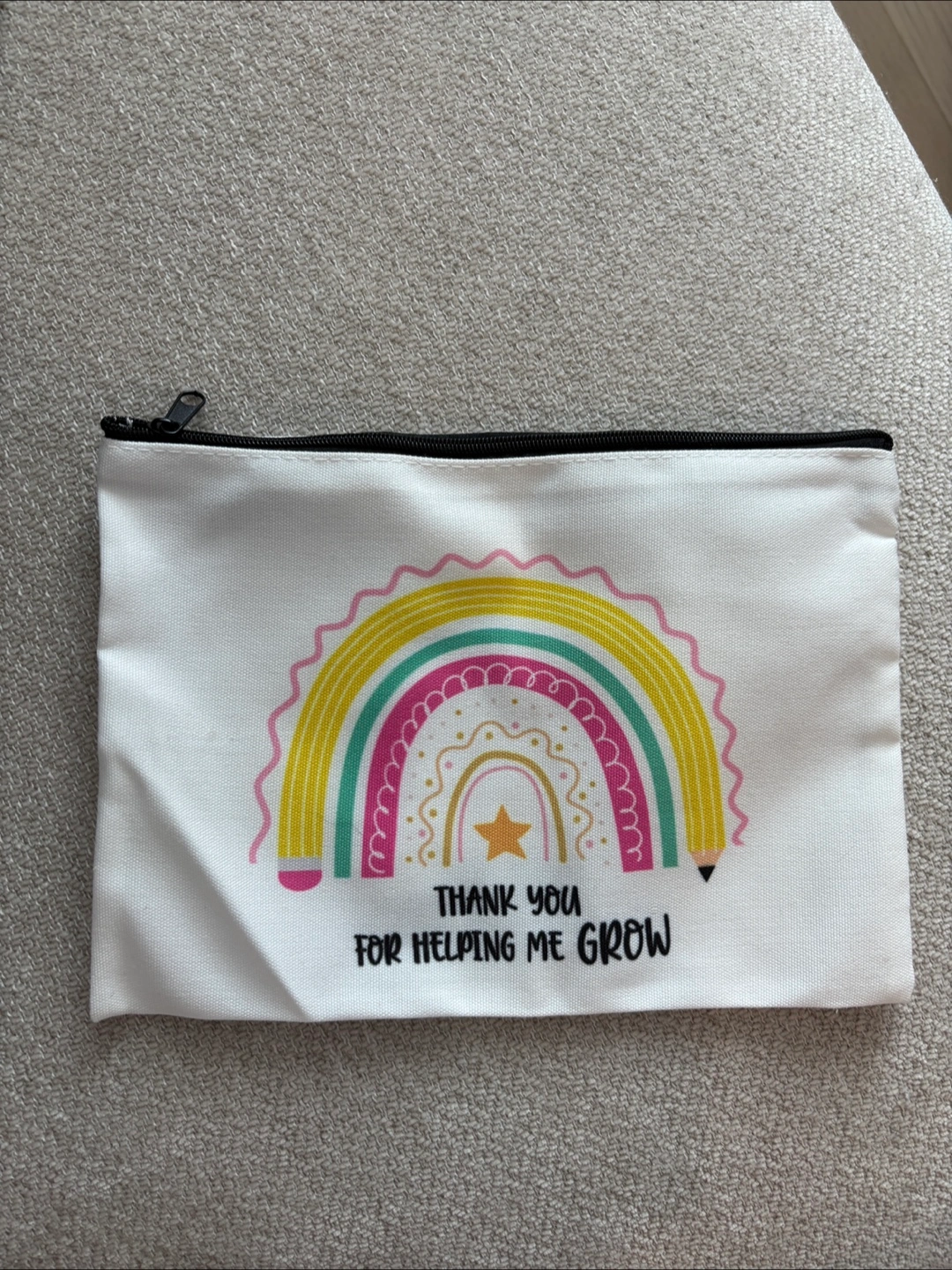 New/never used- pouch design with "Thank You For Helping Me Grow". It's perfect for storing small items like makeup, pencils, or other accessories