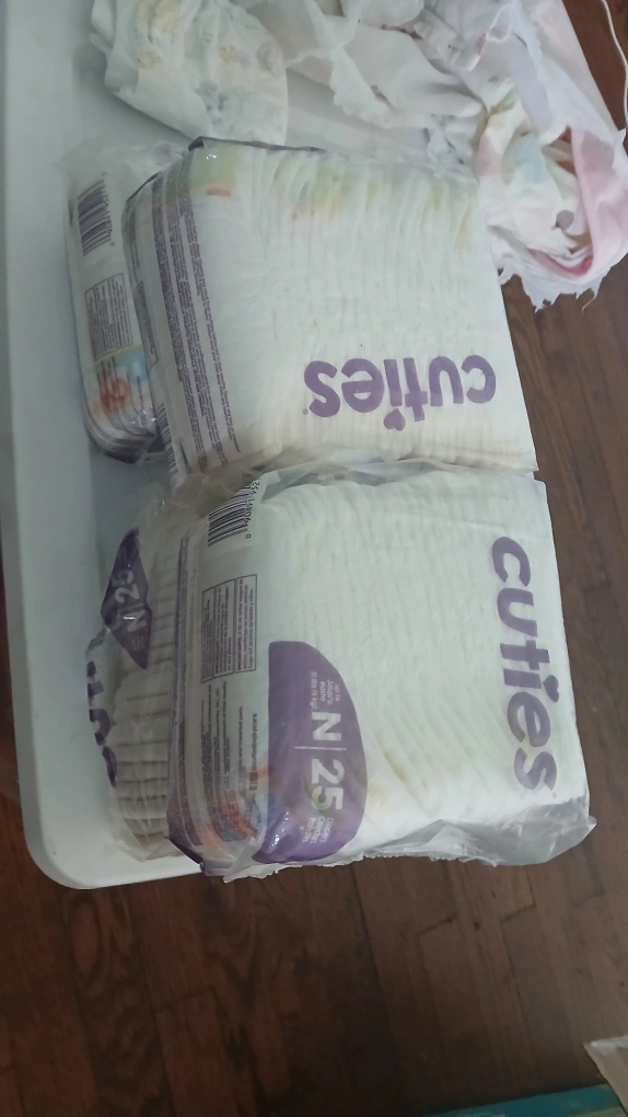 Selling a pack of Cuties diapers, size N (Newborn), suitable for babies up to 10 lbs. The pack contains 25 diapers. Perfect for your little one! 4 pack total