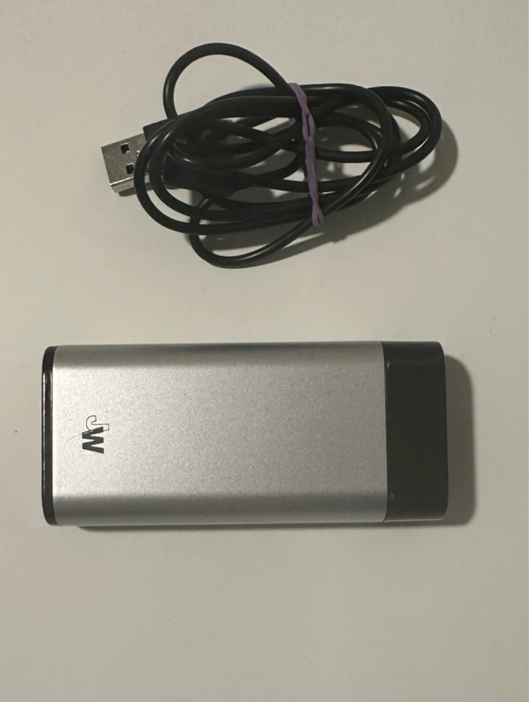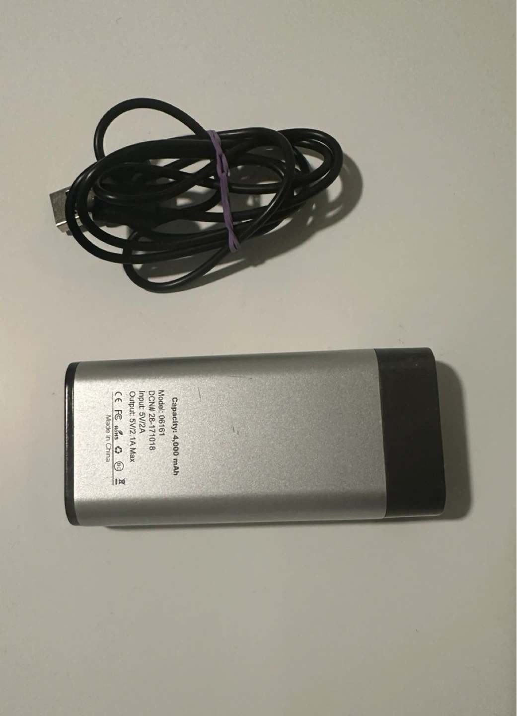Selling a portable charger with 4000 mAh capacity. It includes the cable. It's lightweight and portable, perfect for on-the-go charging