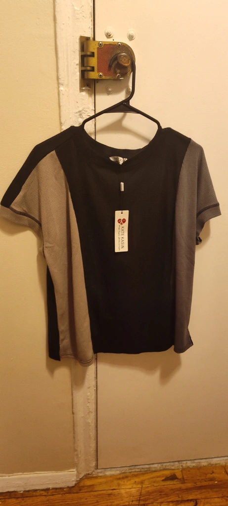 I'm selling a brand new Kate & Mallory color block top! It features a stylish design with black and gray color blocking. Perfect for a casual yet fashionable look!