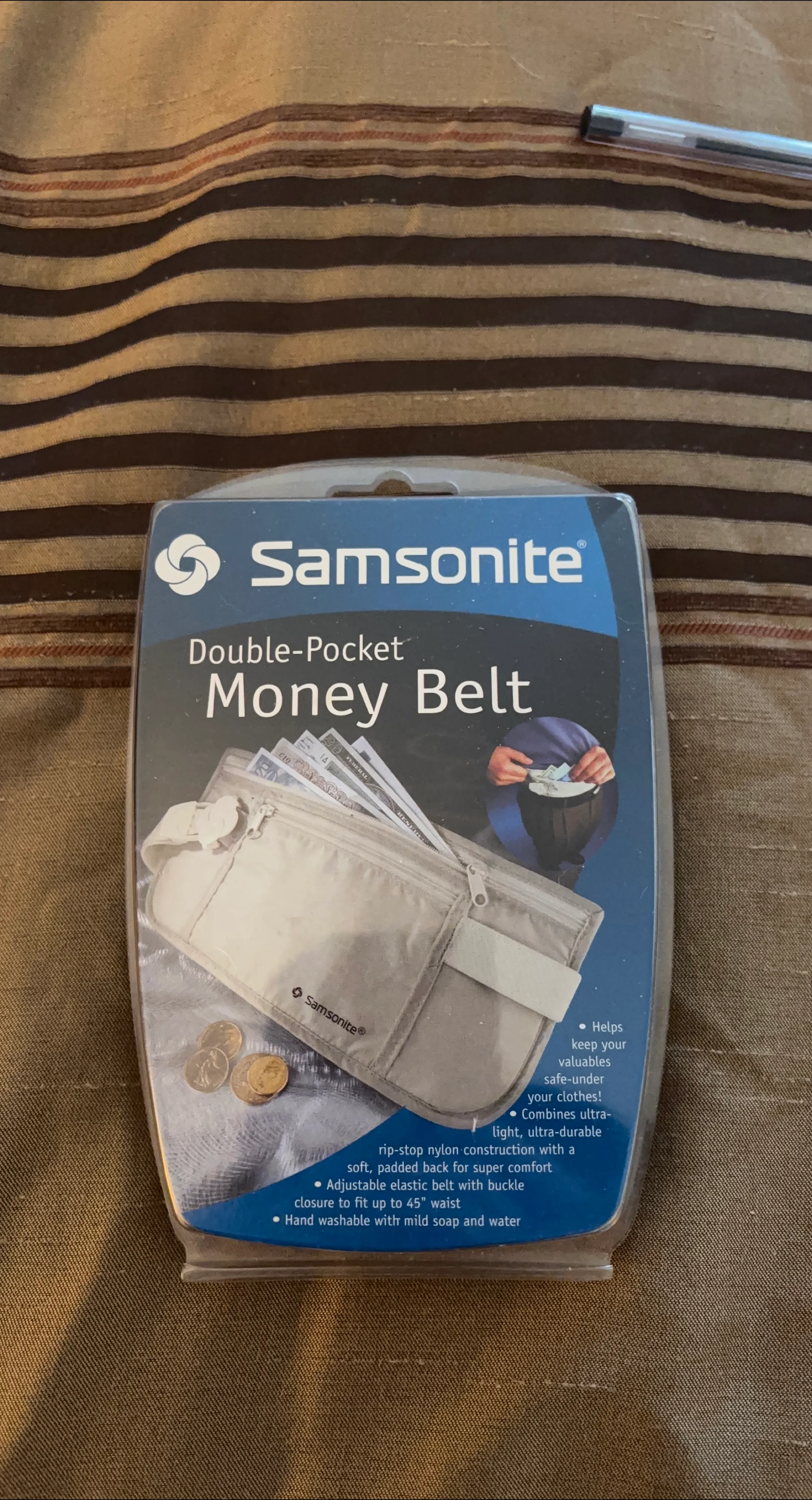 Selling a brand new Samsonite Double-Pocket Money Belt, still in its original packaging! It's designed to keep your valuables safe and hidden under your clothes.