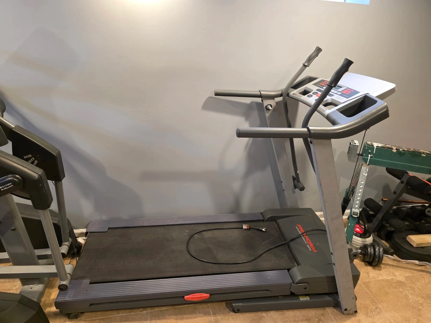 Selling a Pro-Form Crosswalk 390 treadmill. It's in good condition and ready for a new workout routine! It has custom-fit workouts and a display to track your progress