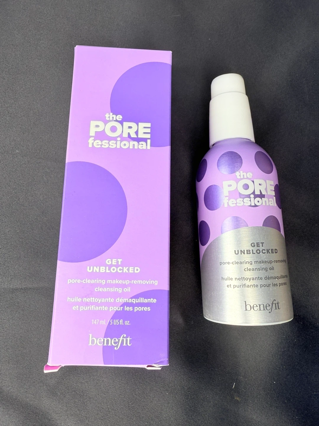 Selling a bottle of Benefit's The POREfessional Get Unblocked pore-clearing makeup-removing cleansing oil. It comes in a 147 mL / 5 US fl oz size and includes the original box