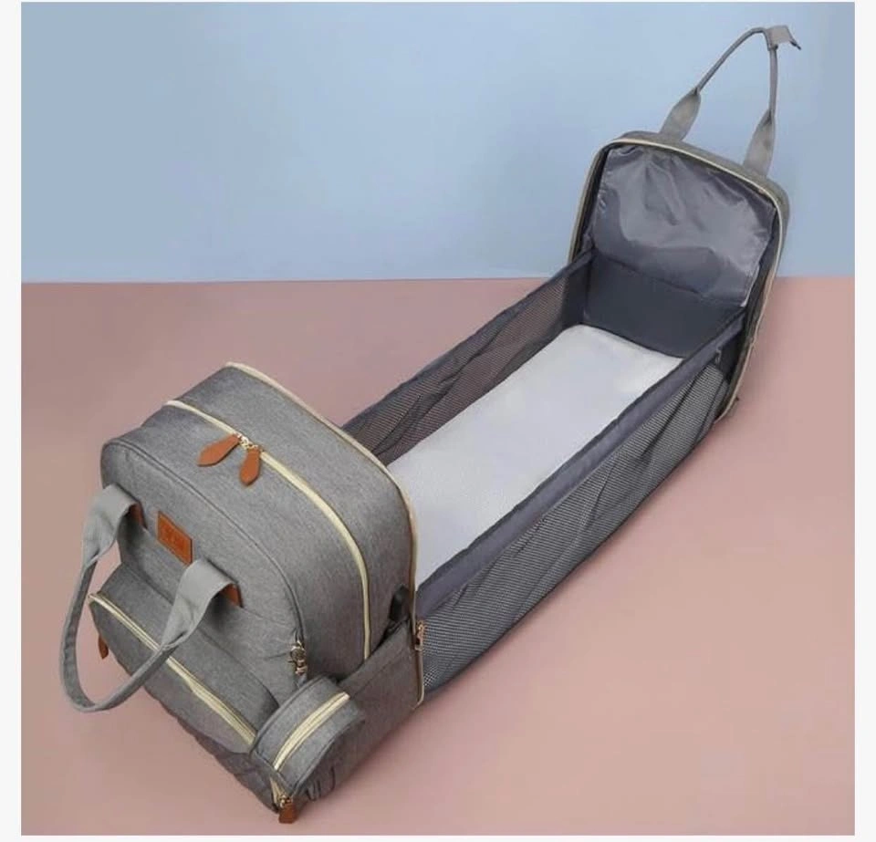 3in-1 Diaper Bag Backpack with Foldable Baby Bed Black