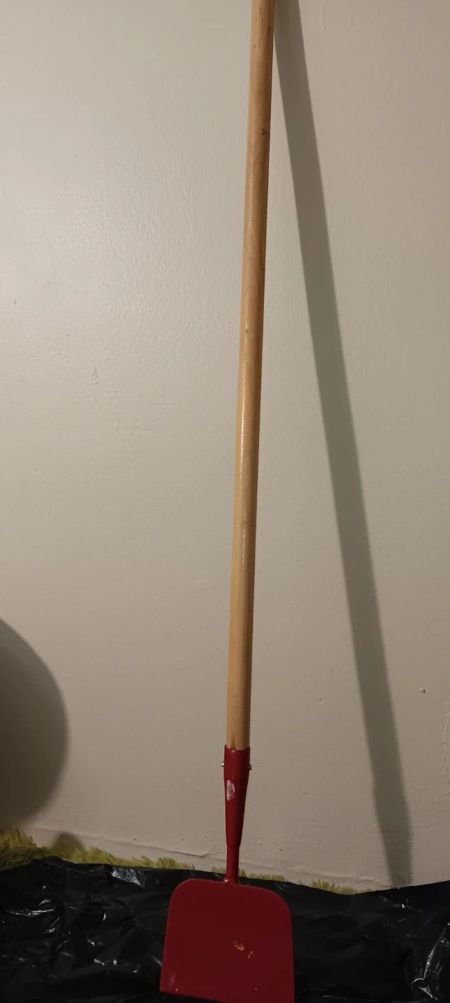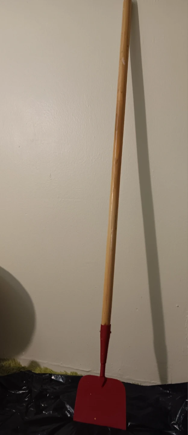 Selling a red snow shovel. It's ready to help you clear your driveway or walkway this winter. Or use it for your garden needs