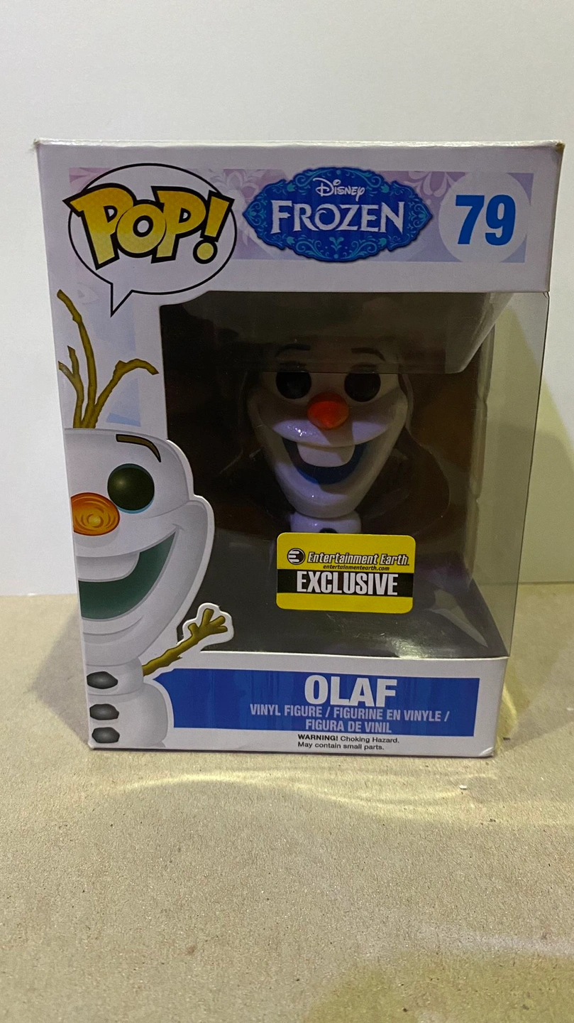 Funko Pop Olaf Glitter Entertainment Earth Exclusive #79 Frozen. Box good but a few flaws. Check pictures. Small wrinkle on box. Local pickup in UIC area. Character Family: Olaf. Brand: Funko pop