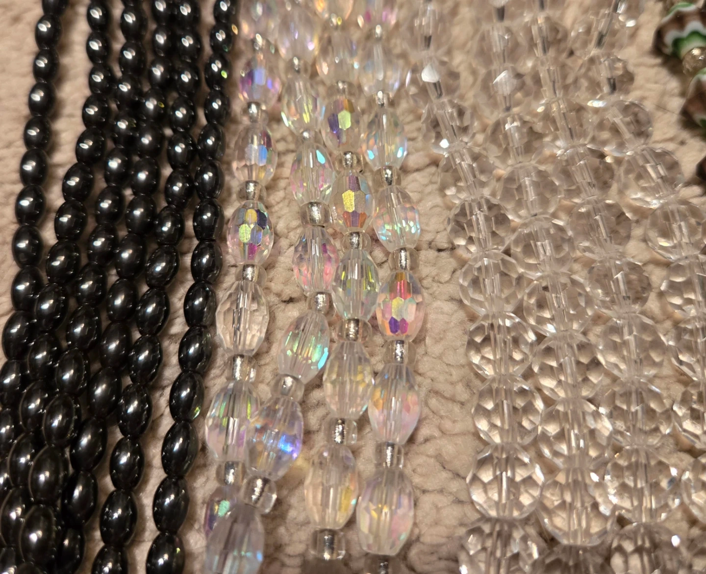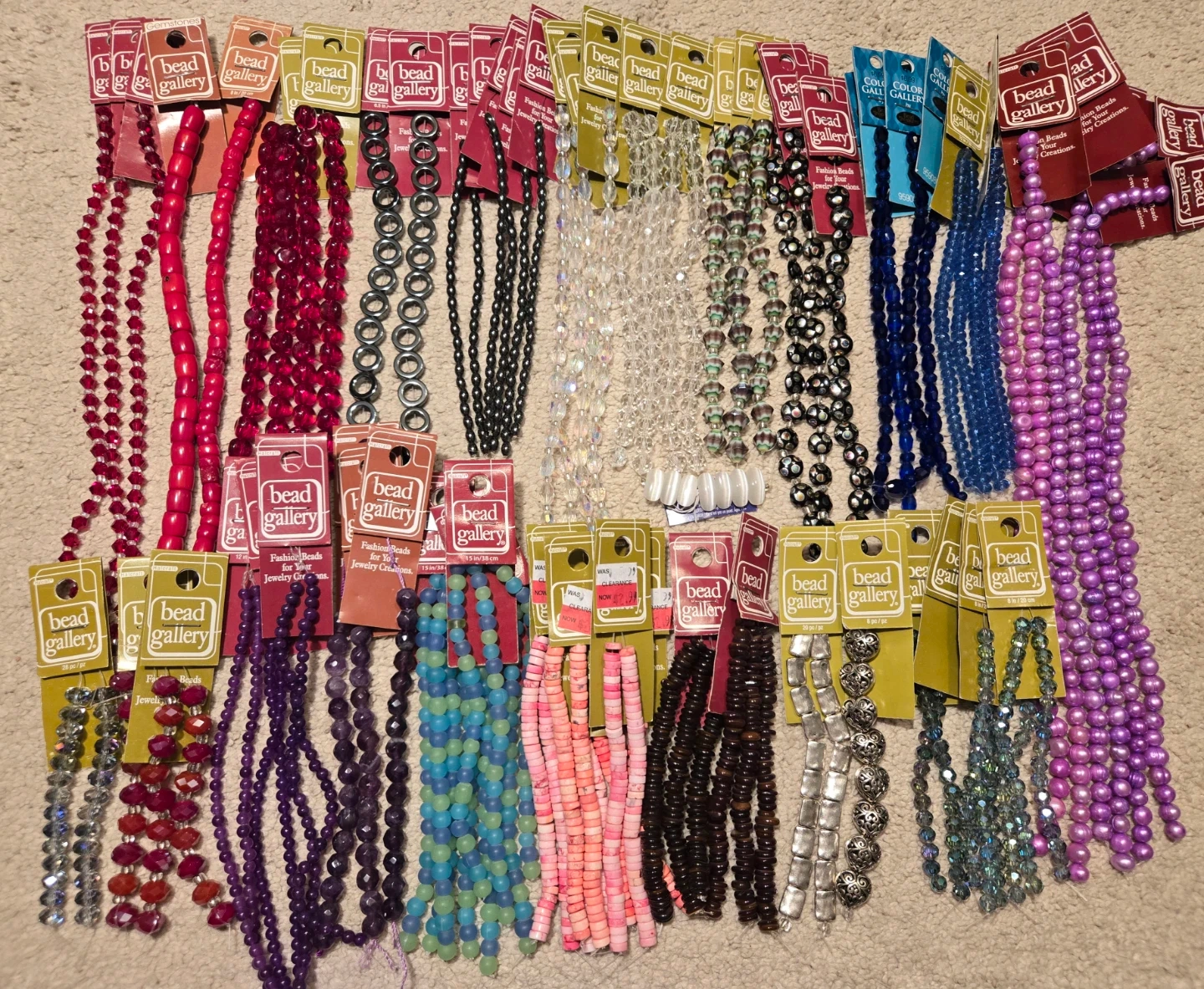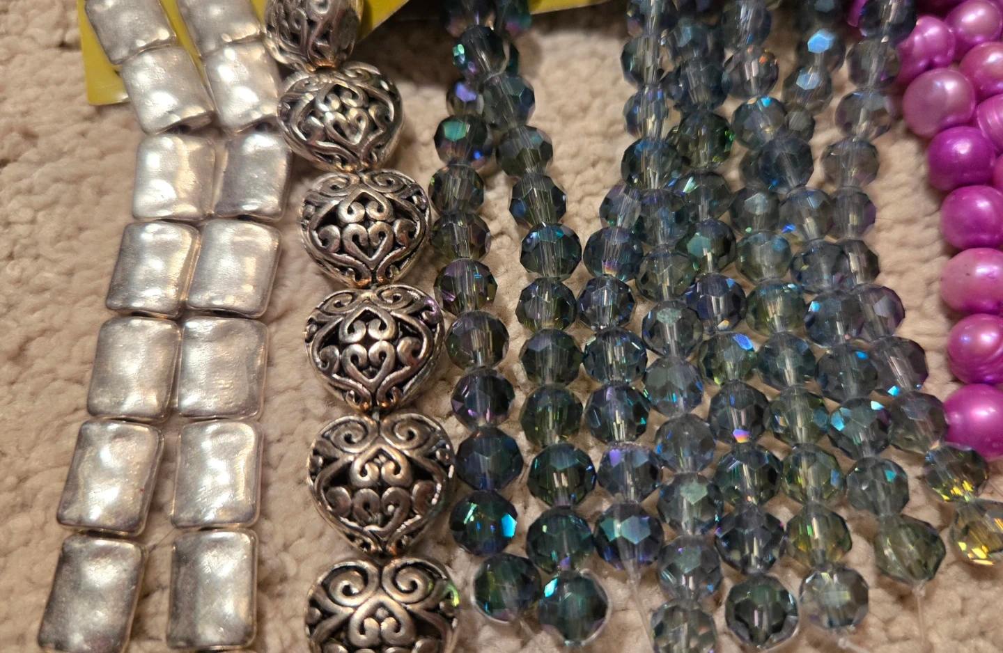 Assorted semi-precious stone and glass beads. Various colors and styles. Great for jewelry making or crafting.