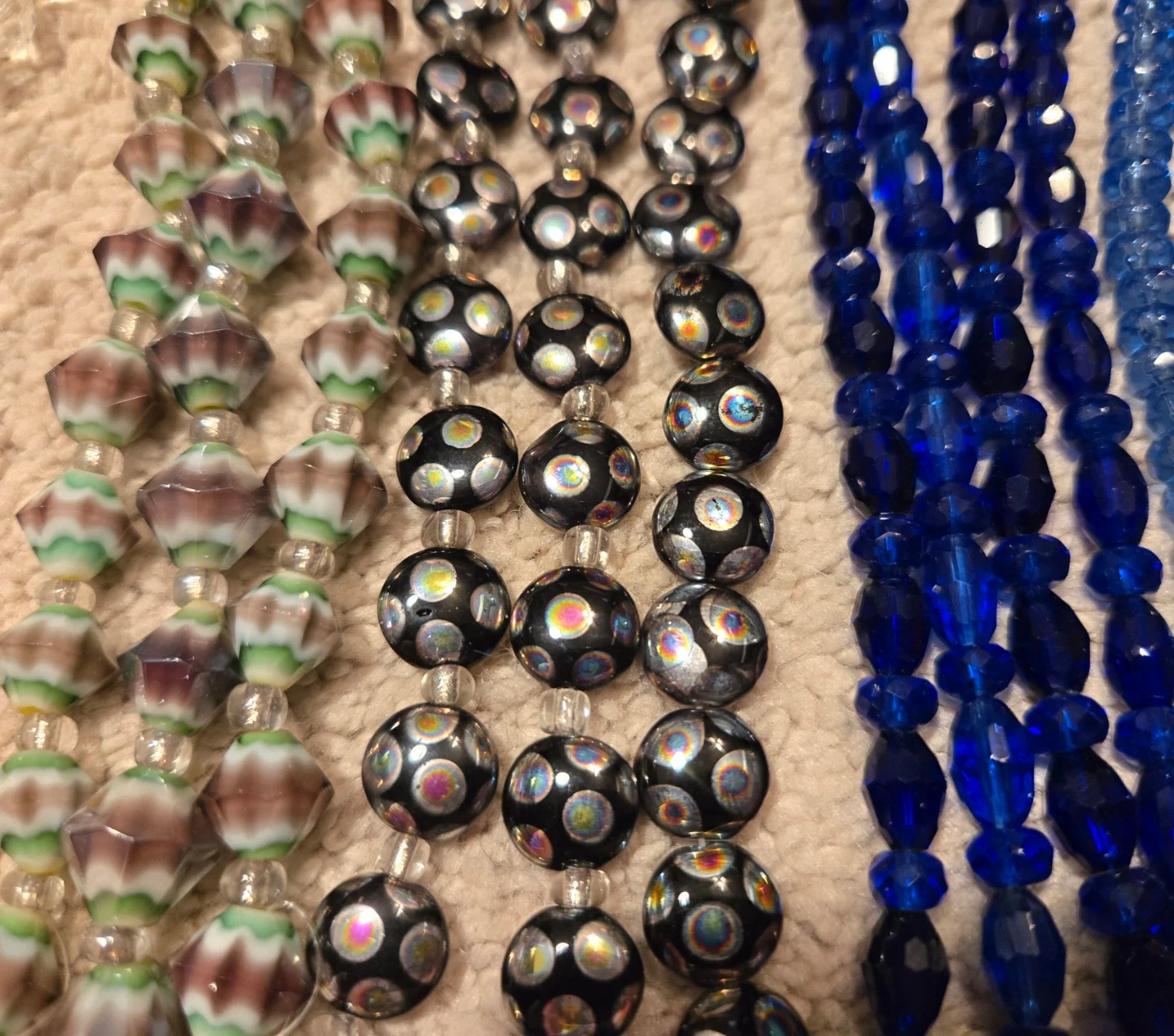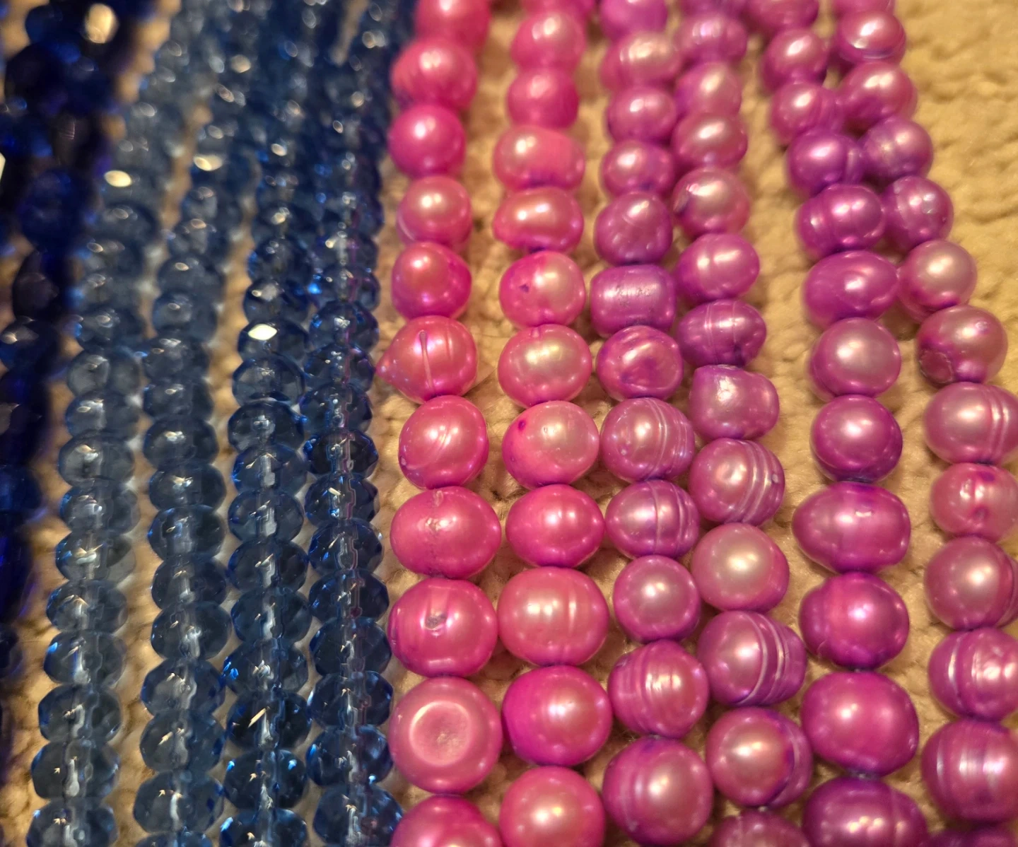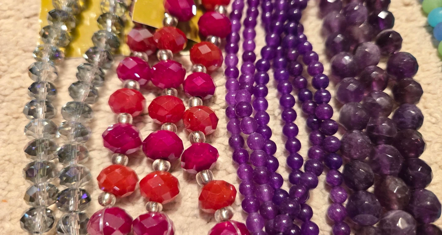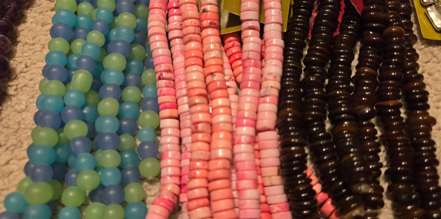Assorted semi-precious stone and glass beads. Various colors and styles. Great for jewelry making or crafting.