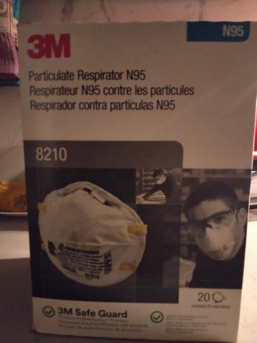 12Selling a box of 3M N95 particulate respirators, model 8210. The box contains 20 respirators. These are from 3M's Safe Guard product line.