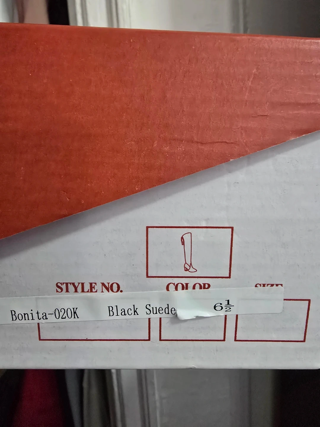 Selling a pair of Bonita over-the-knee boots in black suede! They're a size 6.5 and have a stylish look. The boots come with their original box