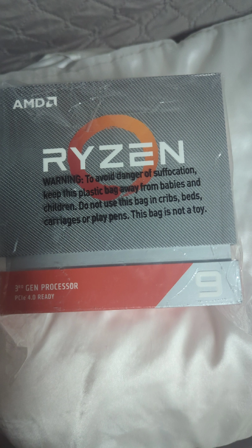 Selling an AMD Ryzen 9 3900X processor. It features 12 cores and 24 threads. The box includes the heat sink fan