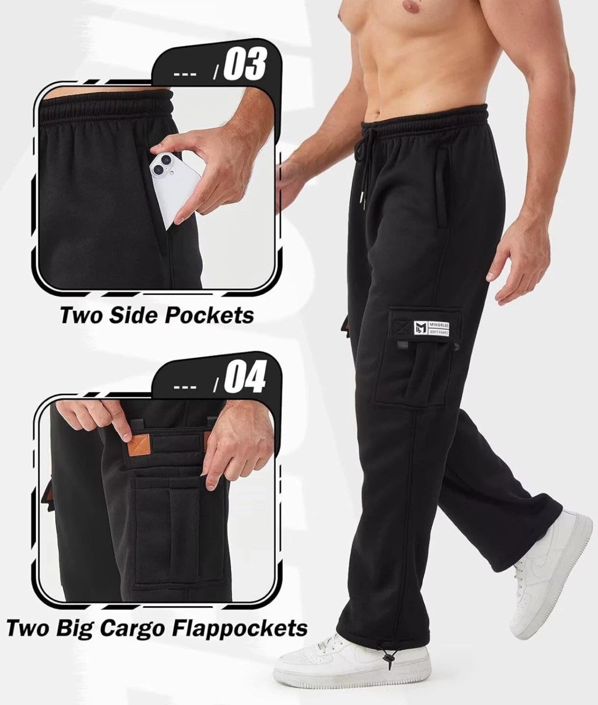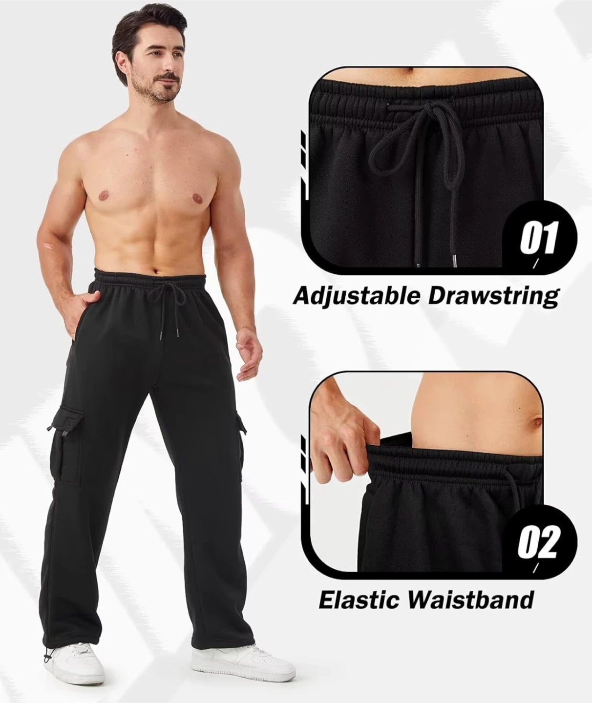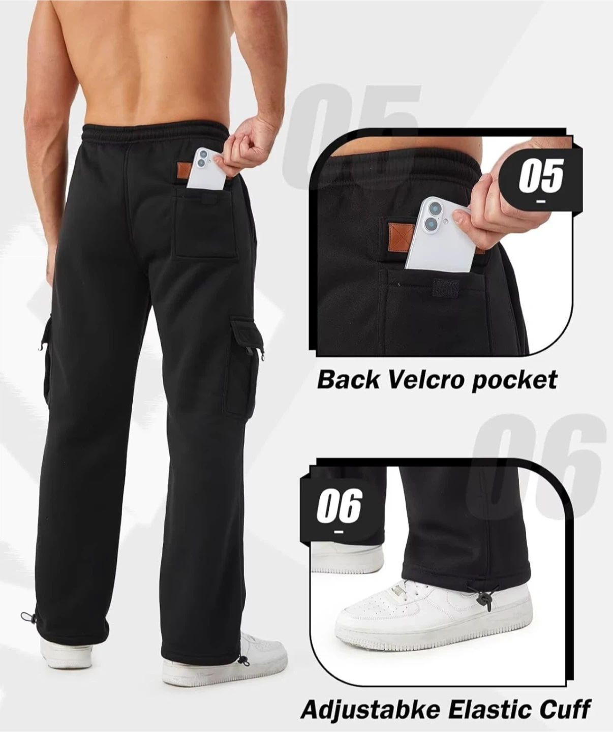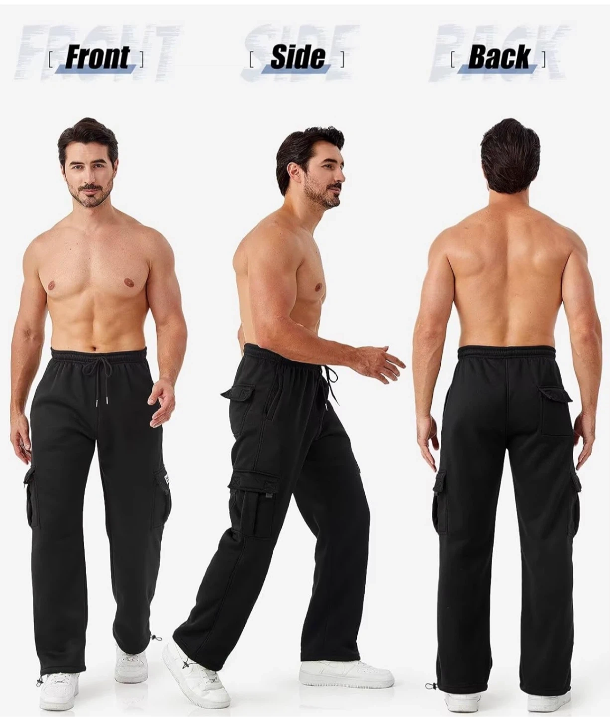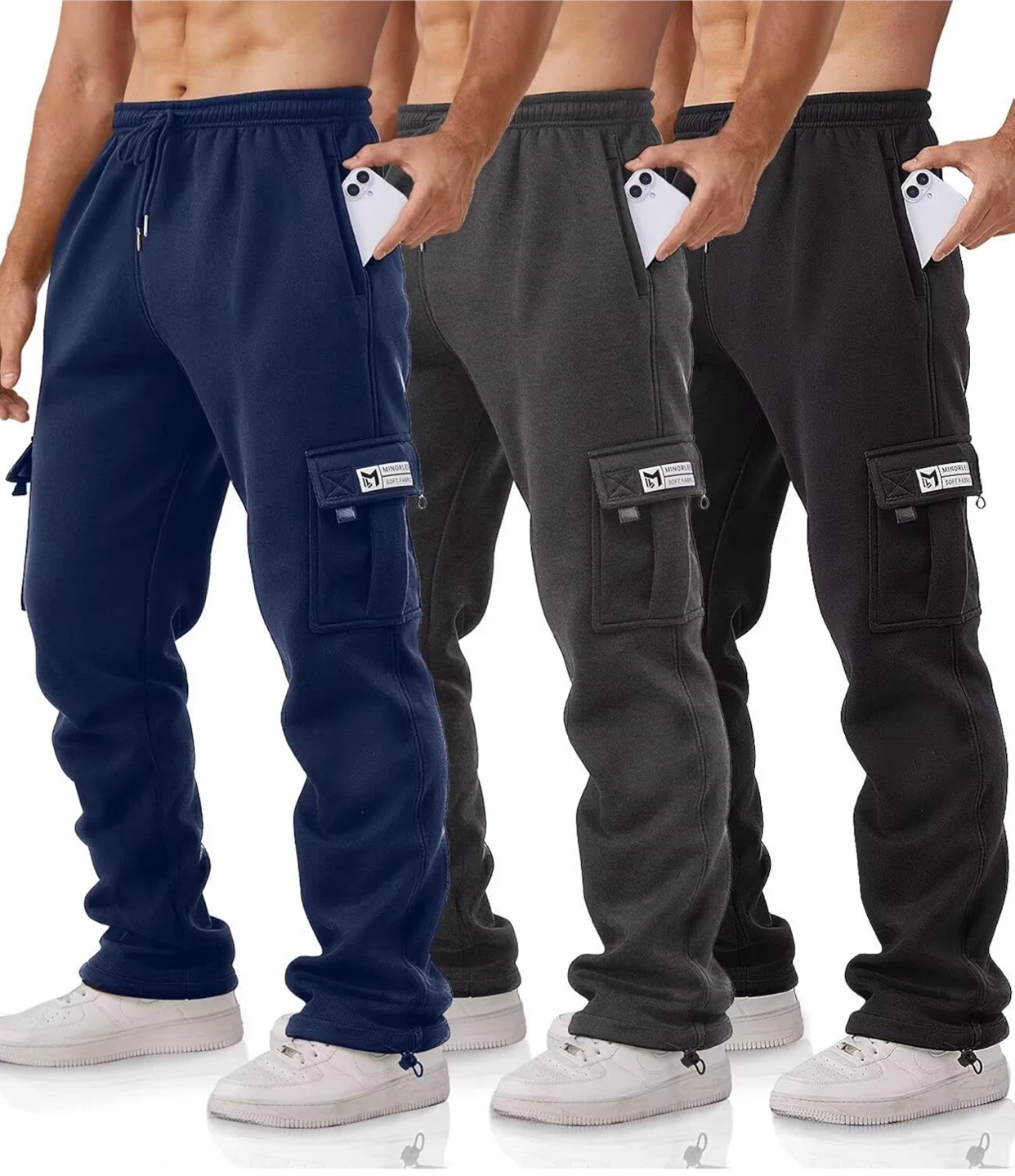 3 Pack Cargo Pants for Men Relaxed Fit Mens Joggers with Pockets,Fleece Hiking Tactical Workout Pants Casual(large)