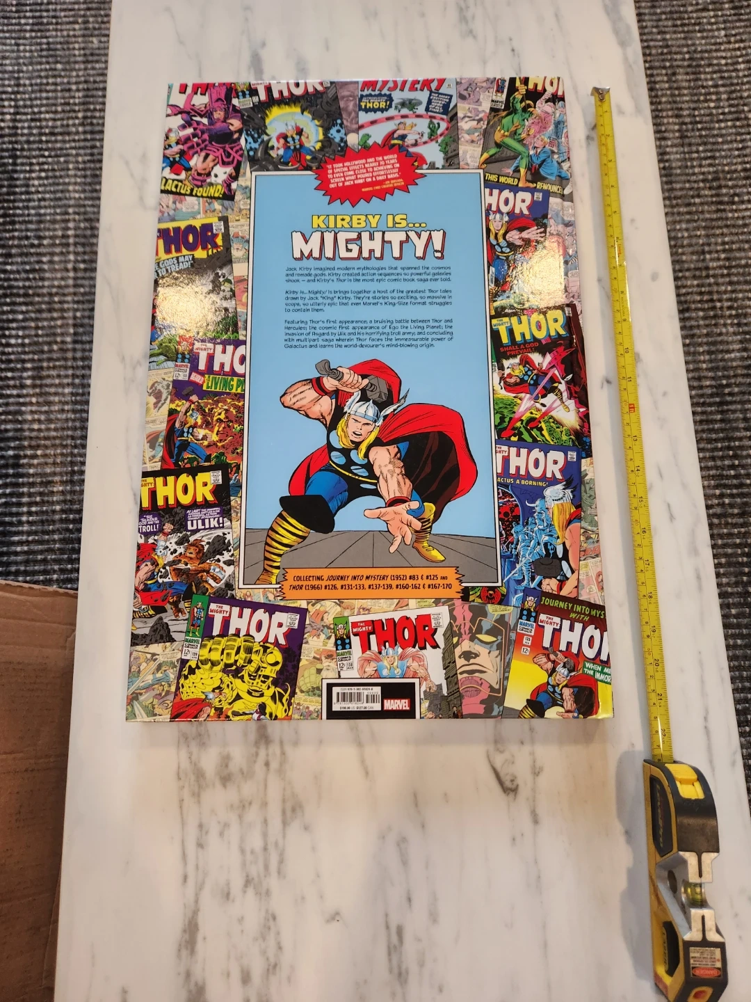 This Marvel Comics hardcover collects Thor stories. It features artwork and writing by Jack Kirby and Stan Lee. This collected edition includes issues from Journey Into Mystery #126-135, and Thor #150-171. Measurements are approximately 22" long by 14" wide. Only available for pickup. Brand new condition.