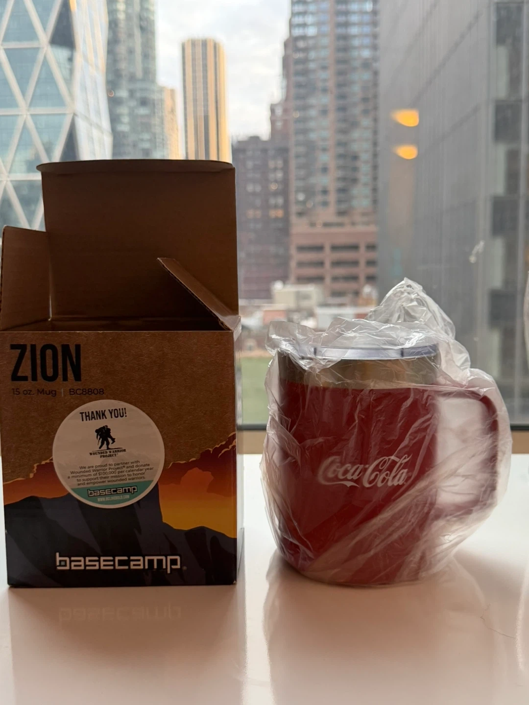This red Coca-Cola Zion mug holds 15 oz. It's part of a partnership with the Wounded Warrior Project. Includes original box.