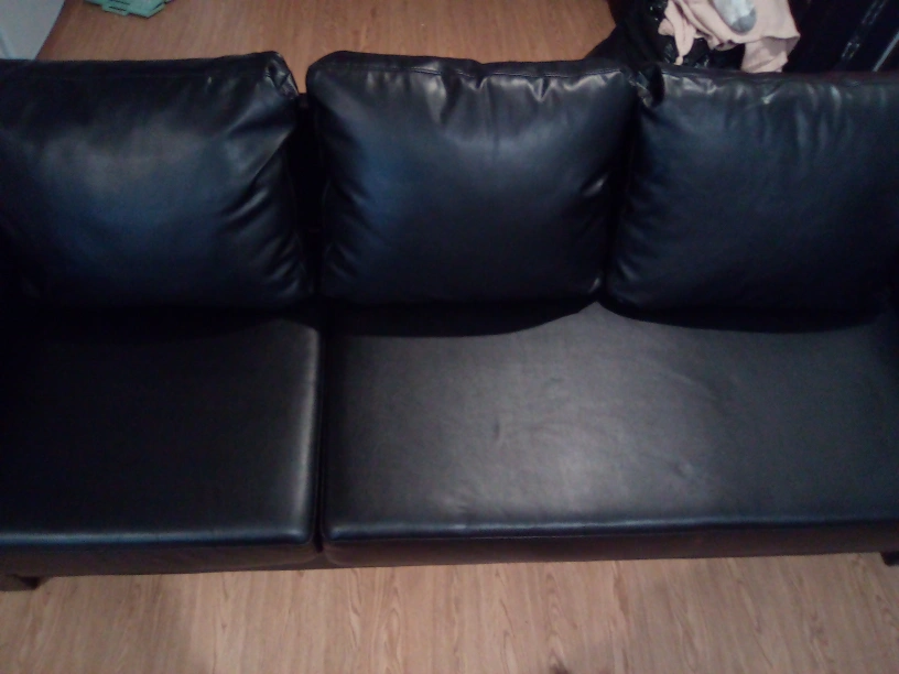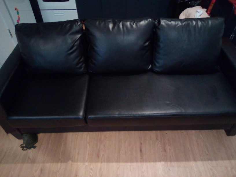 The sofa is new in used I sat on it once to post this but it's unused other then that and it's small,light weight,easy to move and it looks good in your home willing to negotiate price