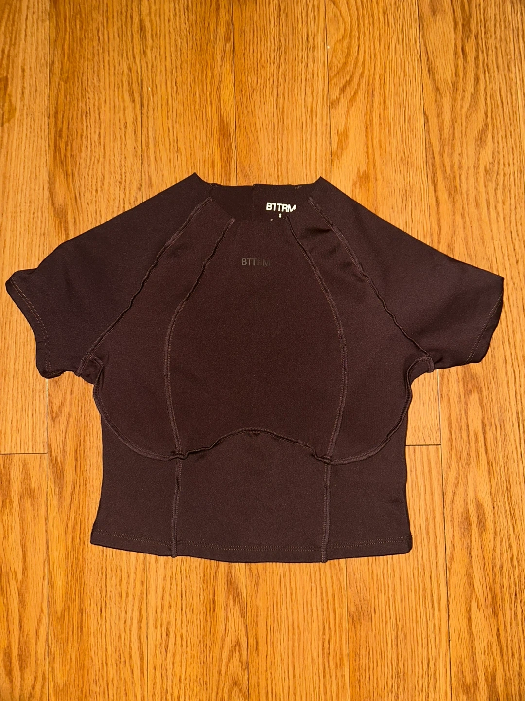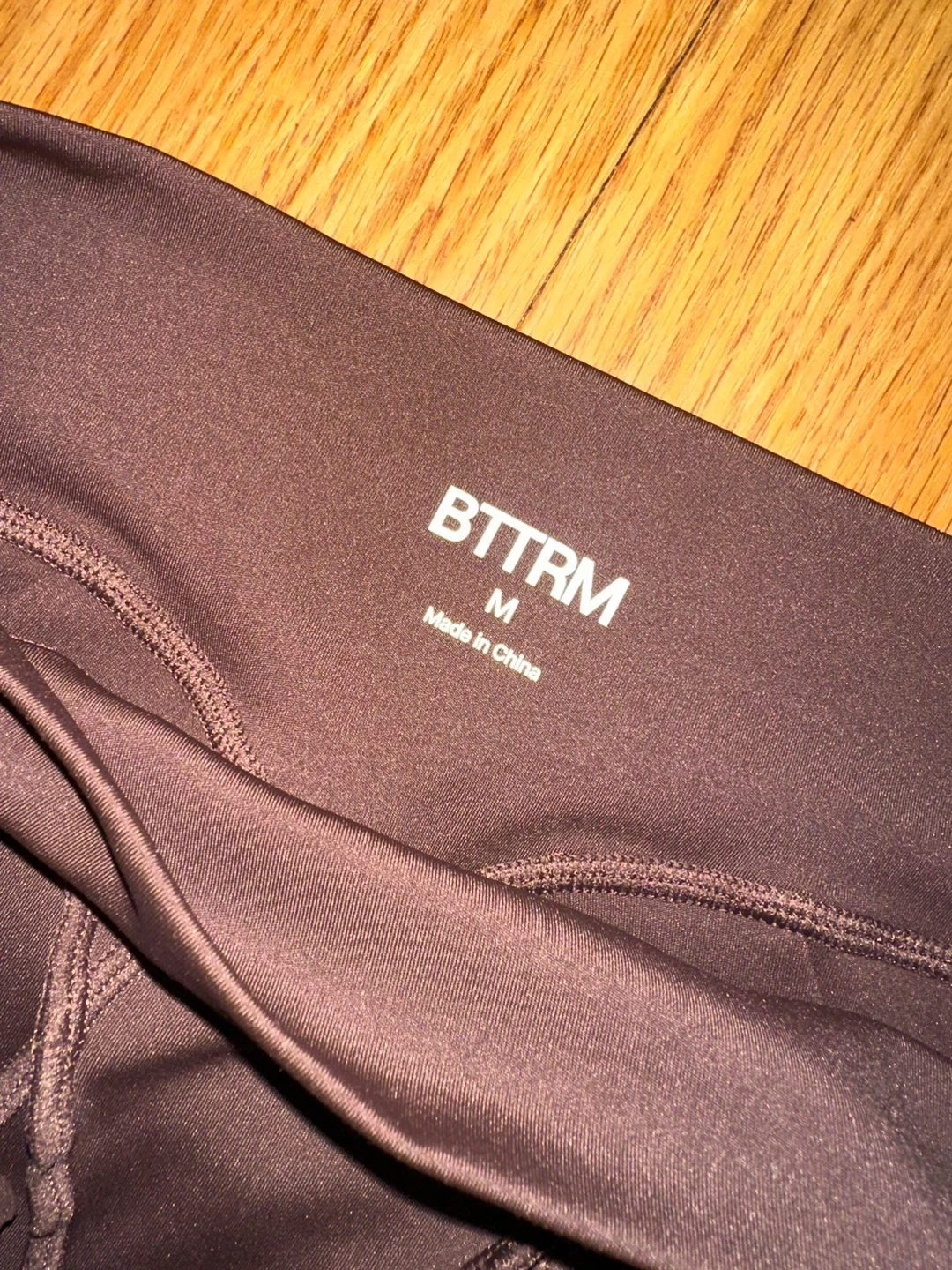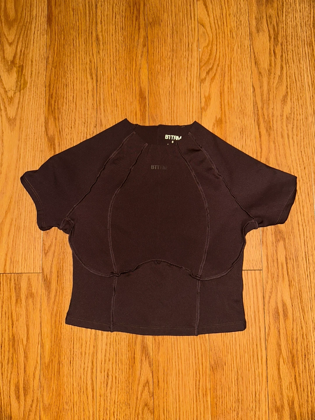 This BTTTRM set includes a cropped short-sleeve top and matching leggings. Both pieces are size medium and made in China. They're perfect for activewear or casual use!