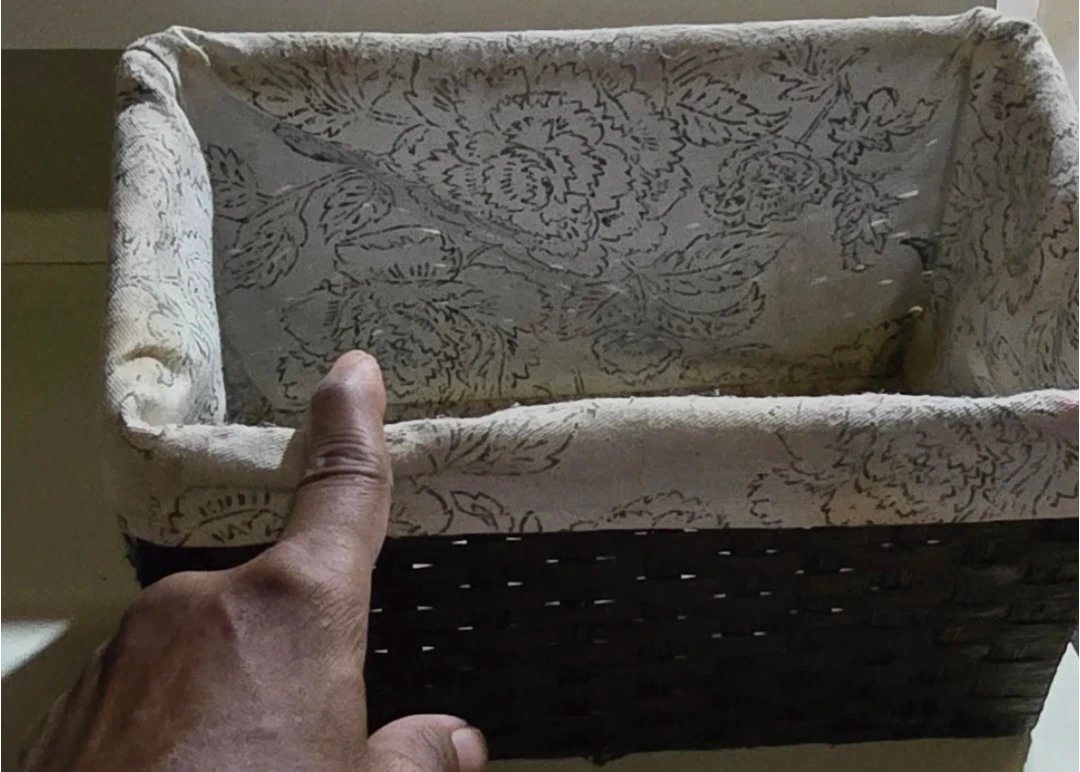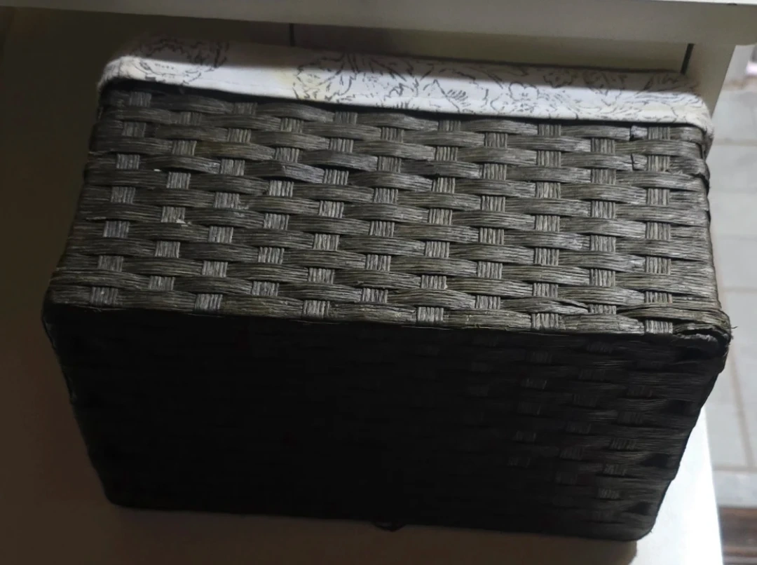 🥕This woven storage basket features a dark gray woven exterior and a white fabric liner with a floral pattern. It's a great size for organizing shelves or countertops. The liner is removable for easy cleaning. It's perfect for storing small items like toiletries, craft supplies, or desk accessories!