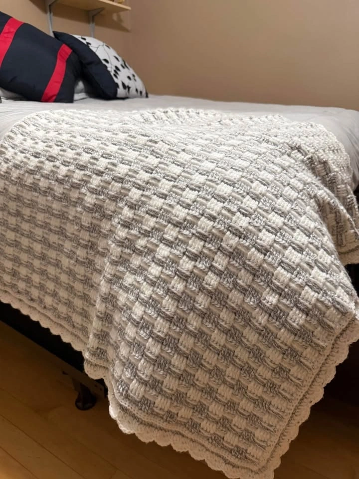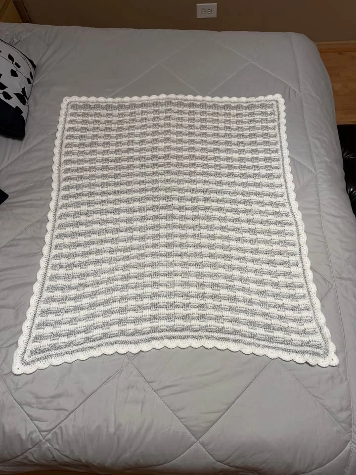 Handmade Gray & White Crochet Baby Blanket | Basket Weave Patter