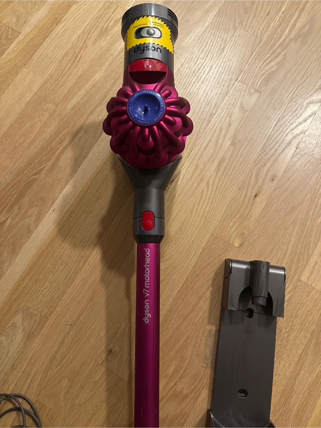 Selling a Dyson V7 Motorhead cordless stick vacuum! It's in great shape and ready to help keep your space clean. This lightweight vacuum is super easy to maneuver and perfect for quick cleanups. Comes with the charger and attachments shown