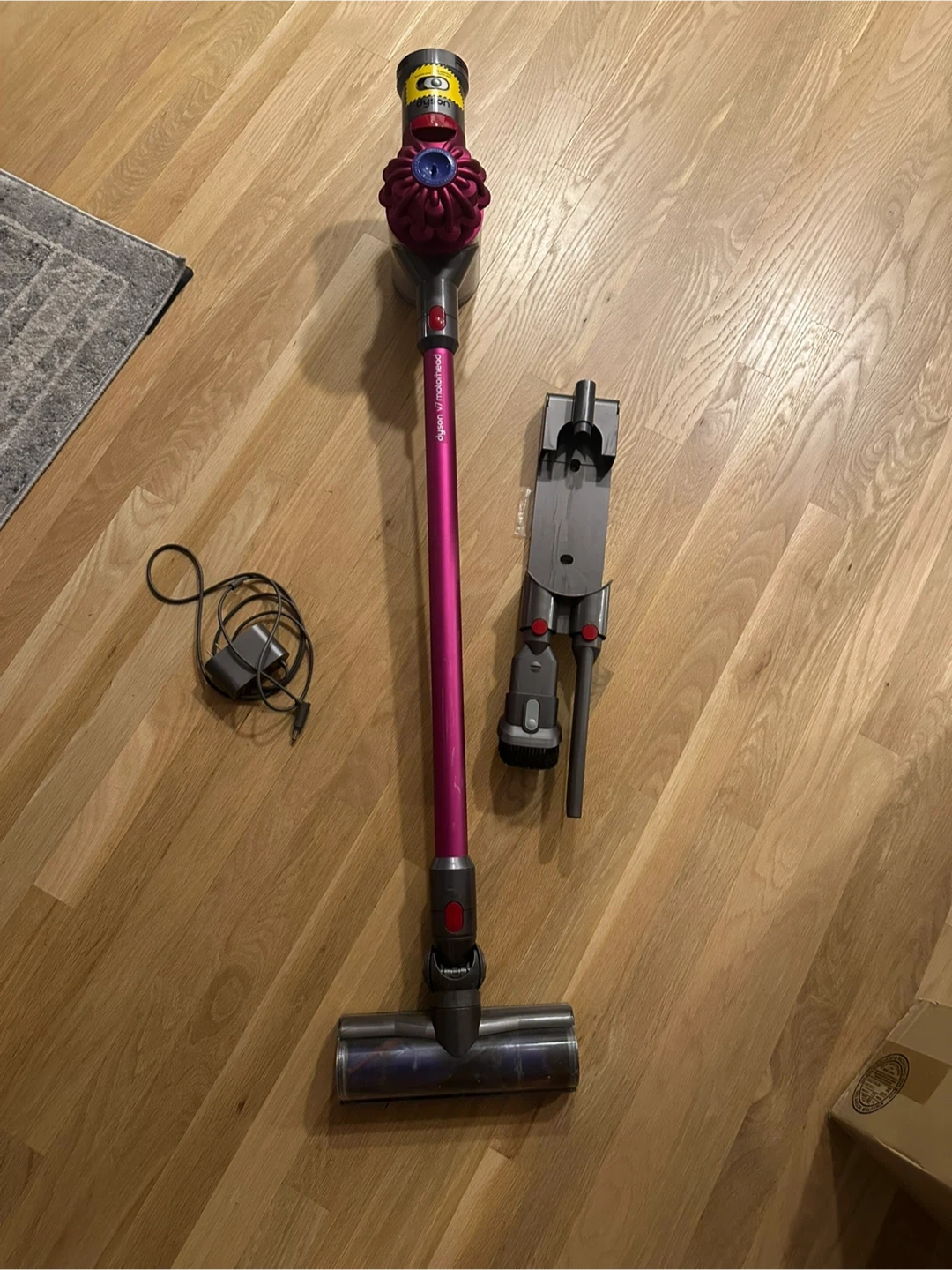Selling a Dyson V7 Motorhead cordless stick vacuum! It's in great shape and ready to help keep your space clean. This lightweight vacuum is super easy to maneuver and perfect for quick cleanups. Comes with the charger and attachments shown