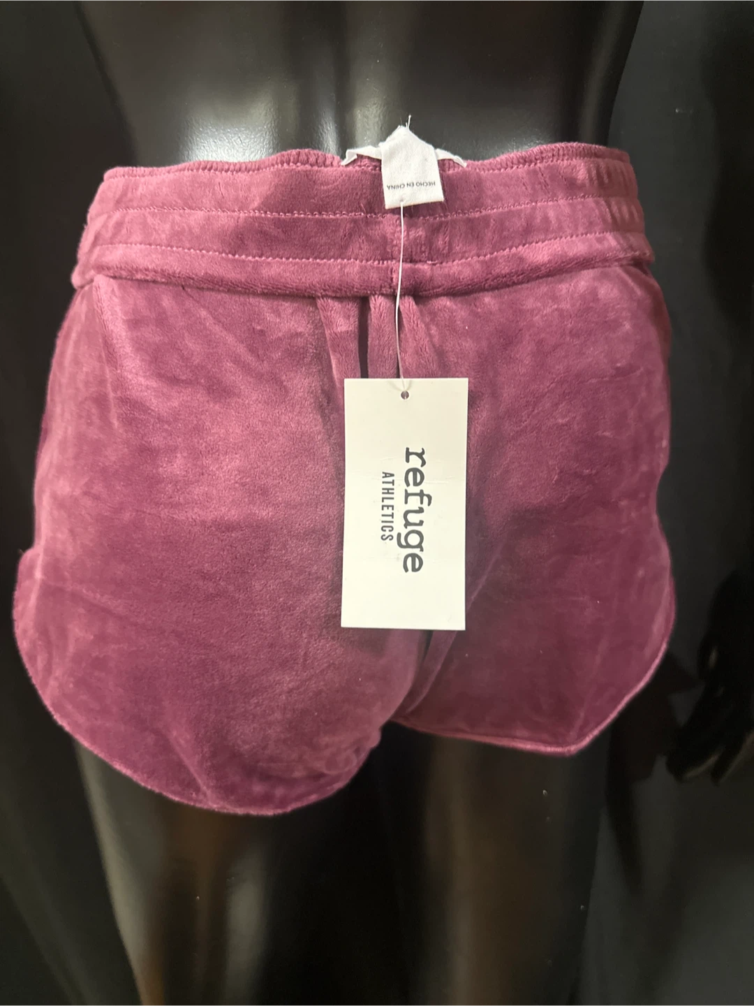These mauve velour dolphin shorts are from Refuge Athletics. They have an elastic waistband and a soft feel. Perfect for lounging or casual wear!