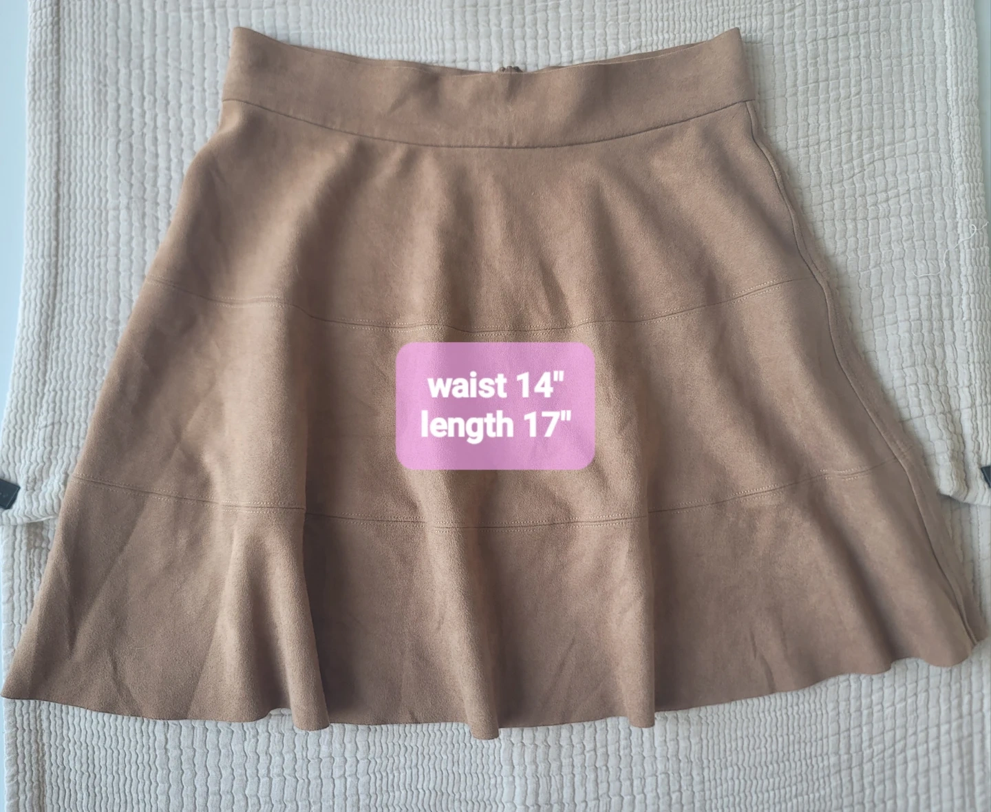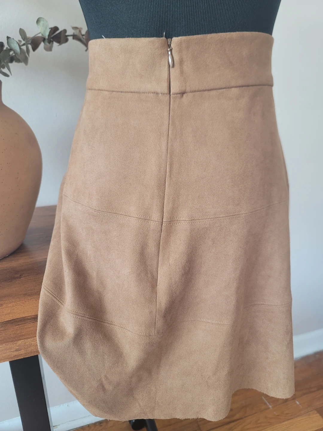 David Lerner Tan A-Line Skirt NWOT Faux suede Paneled Sz LRG