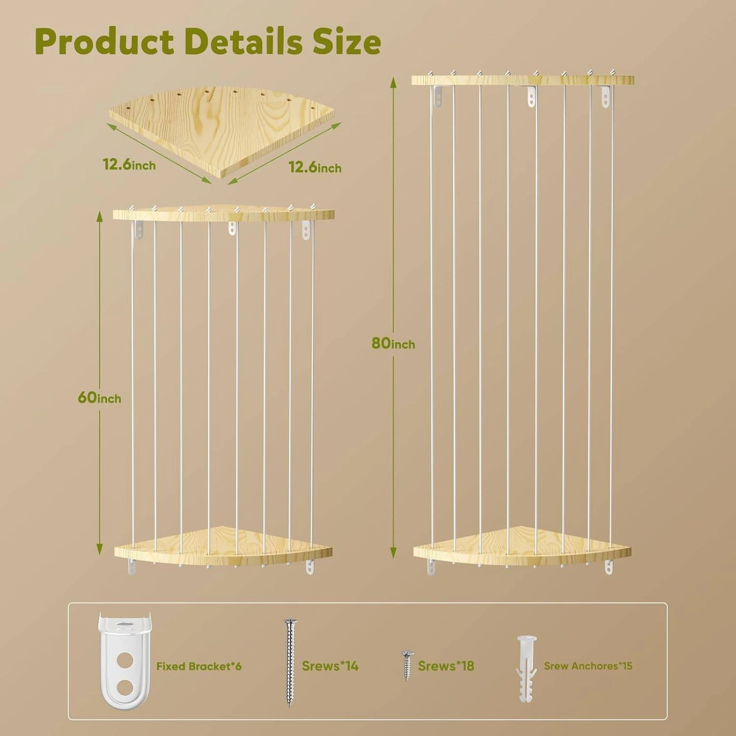 New~ Stuffed Animal Wooden Corner Shelf, Adj 60–80"