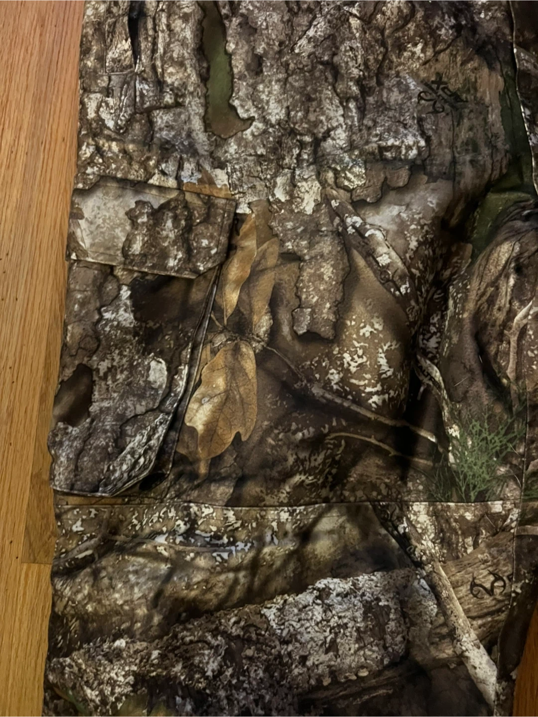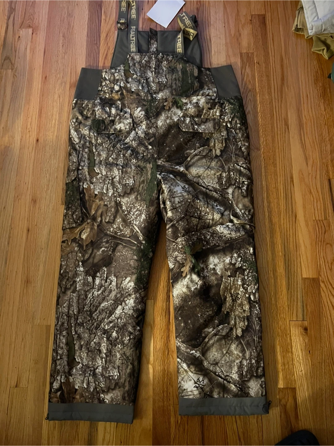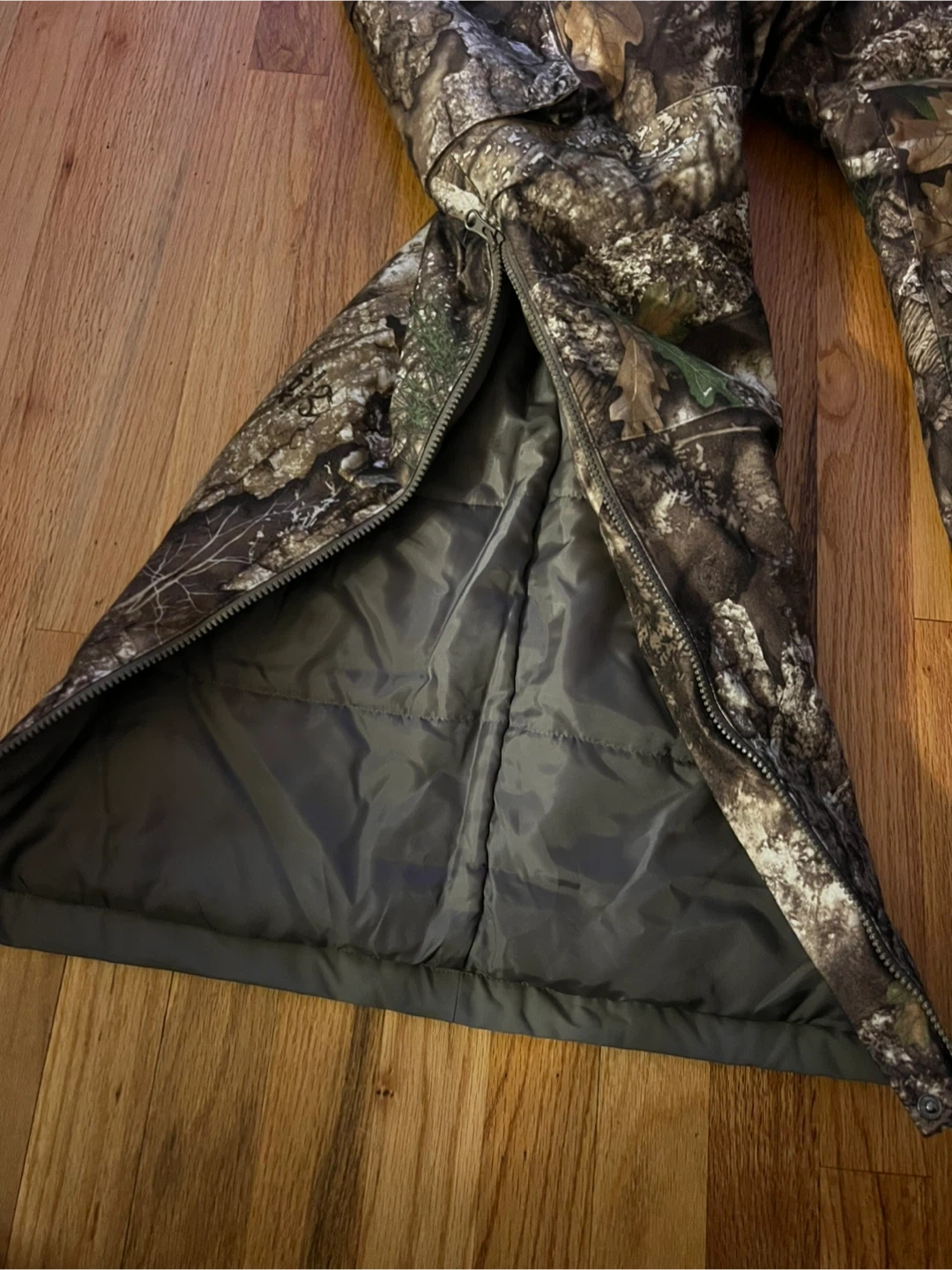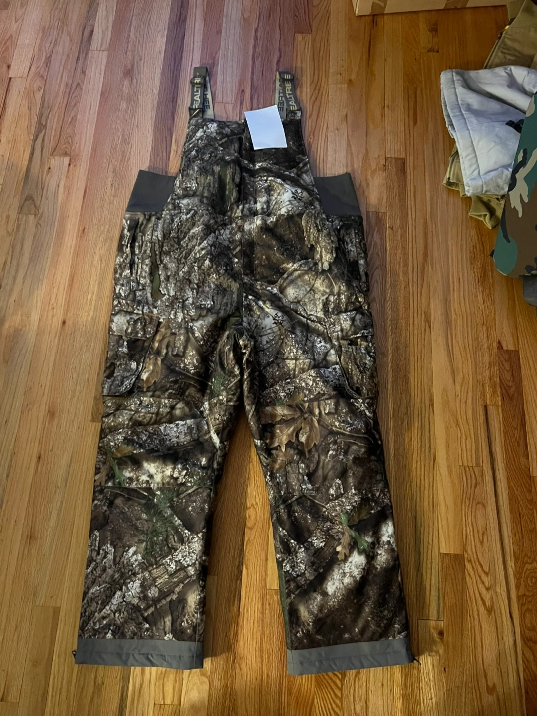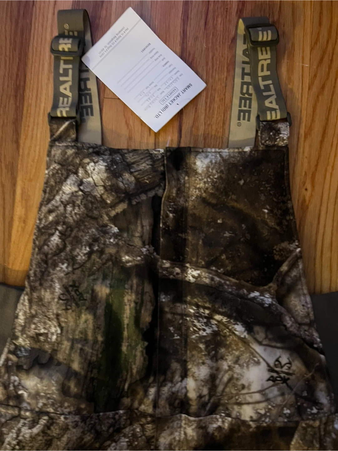 Waterproof and insulated hunting overalls. Full side zippers for easy on and off. Features Realtree APX camouflage pattern. Includes adjustable suspenders and multiple pockets.