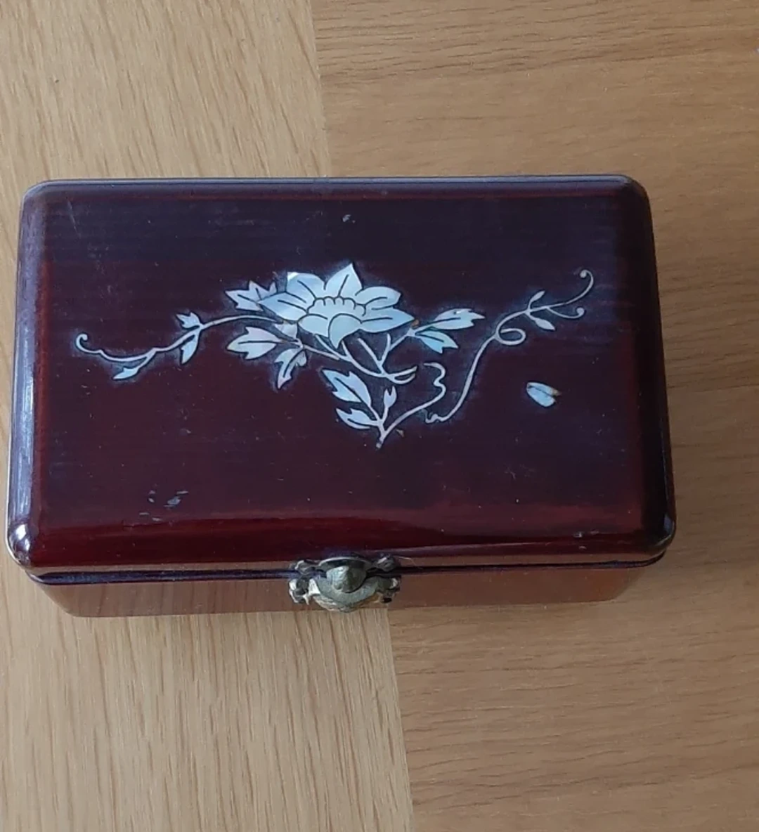 Mother of Pearl floral inlay. & Turtle closure.