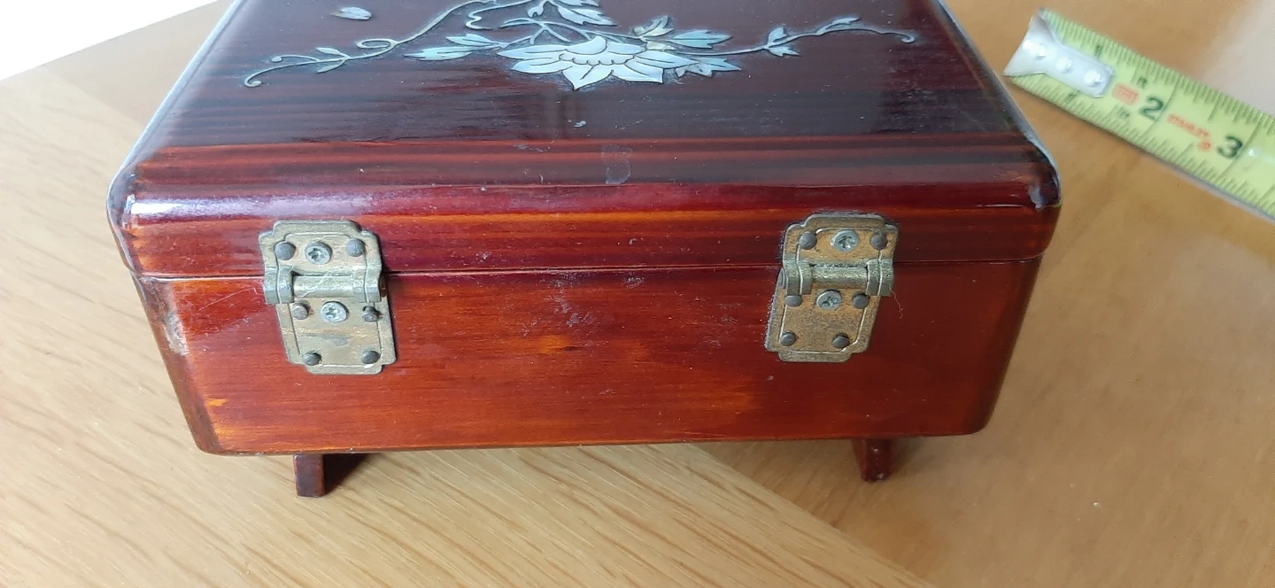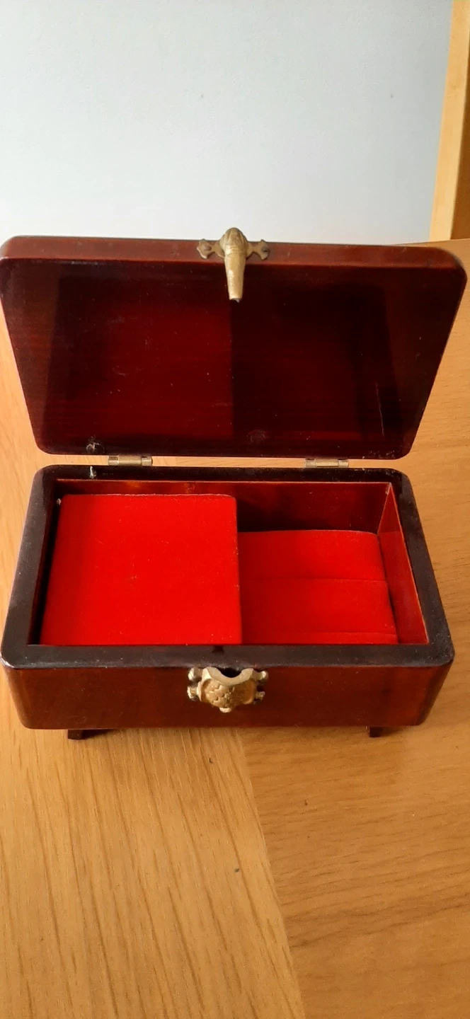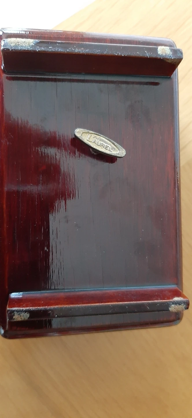 Vintage Laurel Musical Footed Jewelry Box with Red Lining.