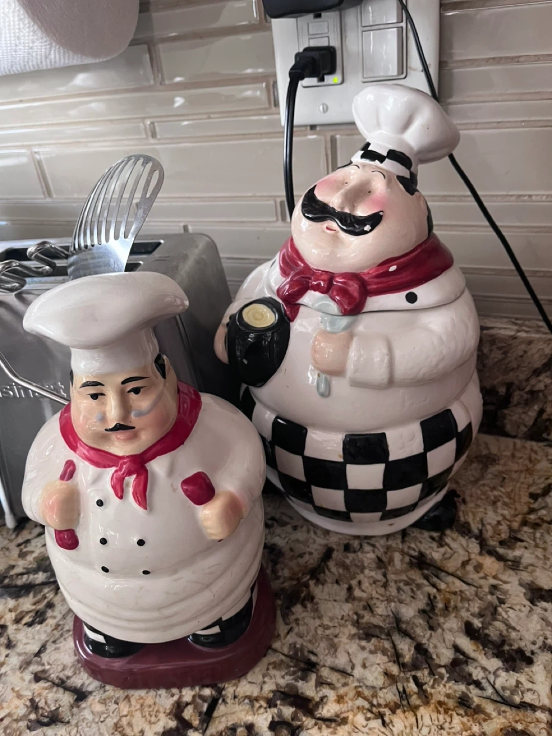 I have a cute espresso themed wall art piece and a pair of chef cookie jars for sale. They would be a great addition to any kitchen!